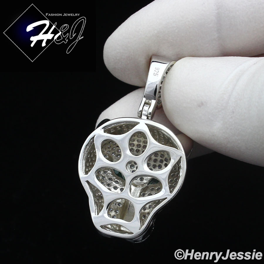 > Sterling Silver > Men > Pendants > MEN SOLID 925 STERLING SILVER ICY BLING CZ SILVER 3D LEOPARD HEAD PENDANT*SP403