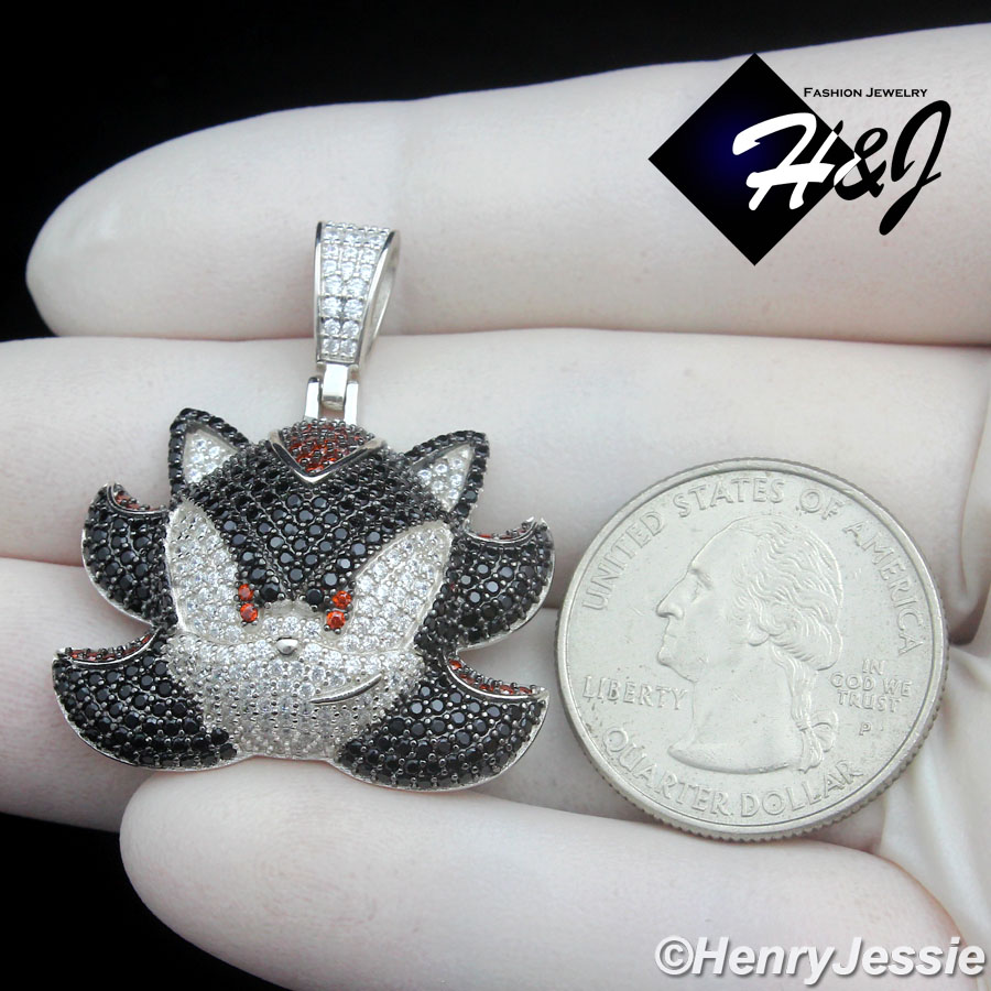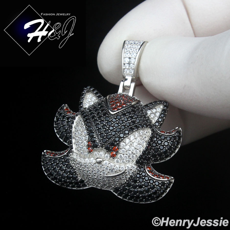 > Sterling Silver > Men > Pendants > MEN SOLID 925 STERLING SILVER FULL ICY BLACK CZ SHADOW THE HEDGEHOG PENDANT*P500