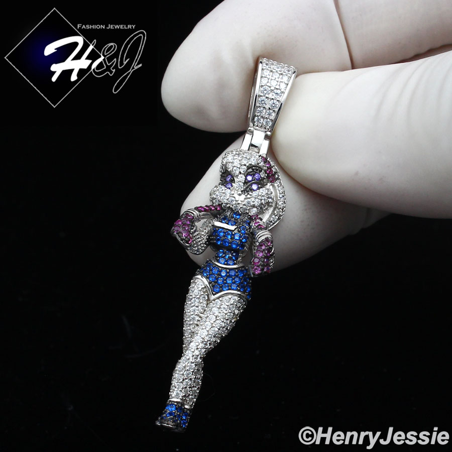 > Sterling Silver > Women > Pendants > 925 STERLING SILVER ICY BLING CZ GOLD PLATED/SILVER 3D BLUE/PURPLE CARTOON PENDANT*SP417