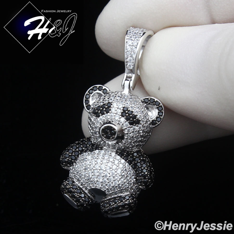 > Sterling Silver > Men > Pendants > MEN WOMEN SOLID 925 STERLING SILVER ICY CZ 3D SILVER/BLACK PANDA PENDANT*SP460