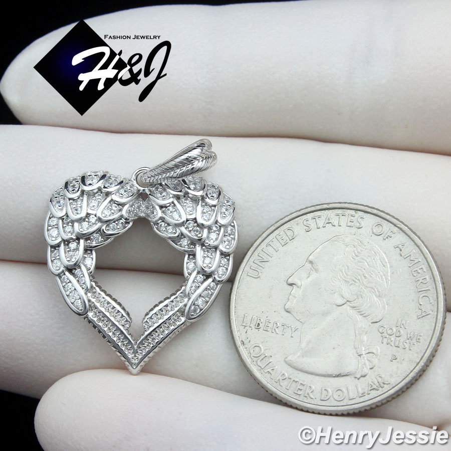 > Sterling Silver > Men > Pendants > 925 STERLING SILVER ICY CZ GOLD PLATED/SILVER 3D ANGEL WING HEART PENDANT*SP461