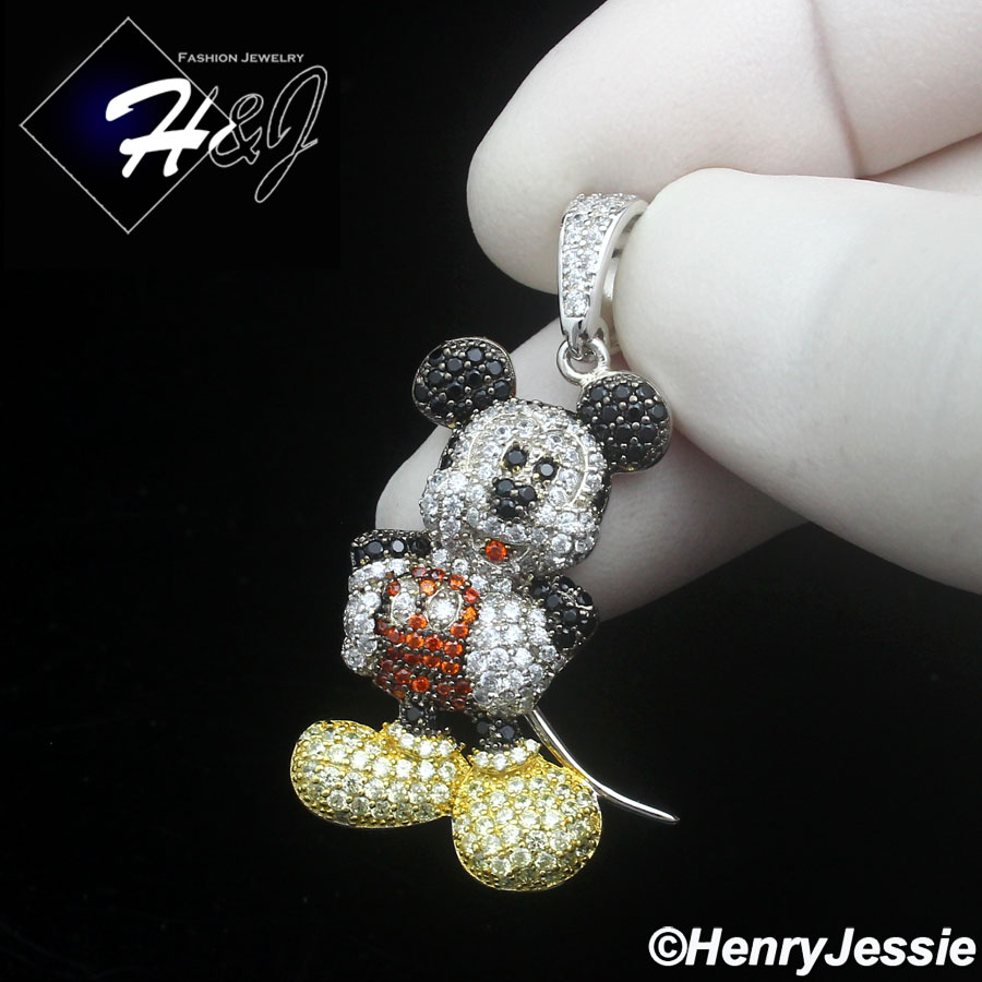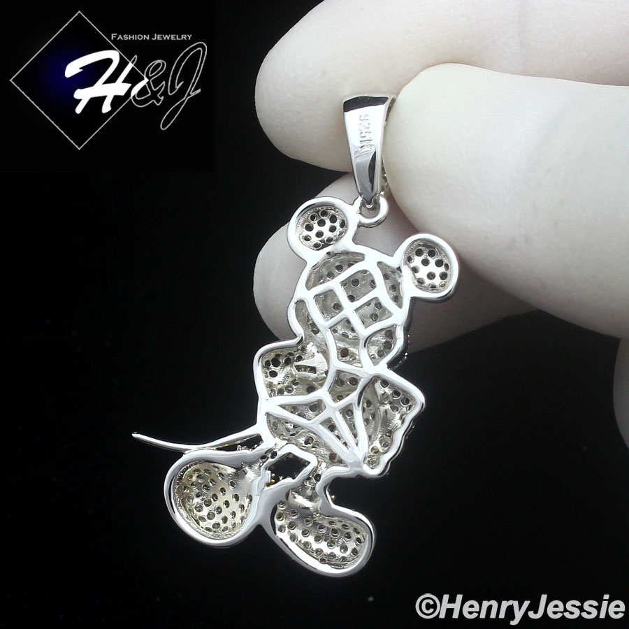 > Sterling Silver > Men > Pendants > MEN SOLID 925 STERLING SILVER ICY BLING CZ 3D HIPHOP MICKEY MOUSE PENDANT*SP475