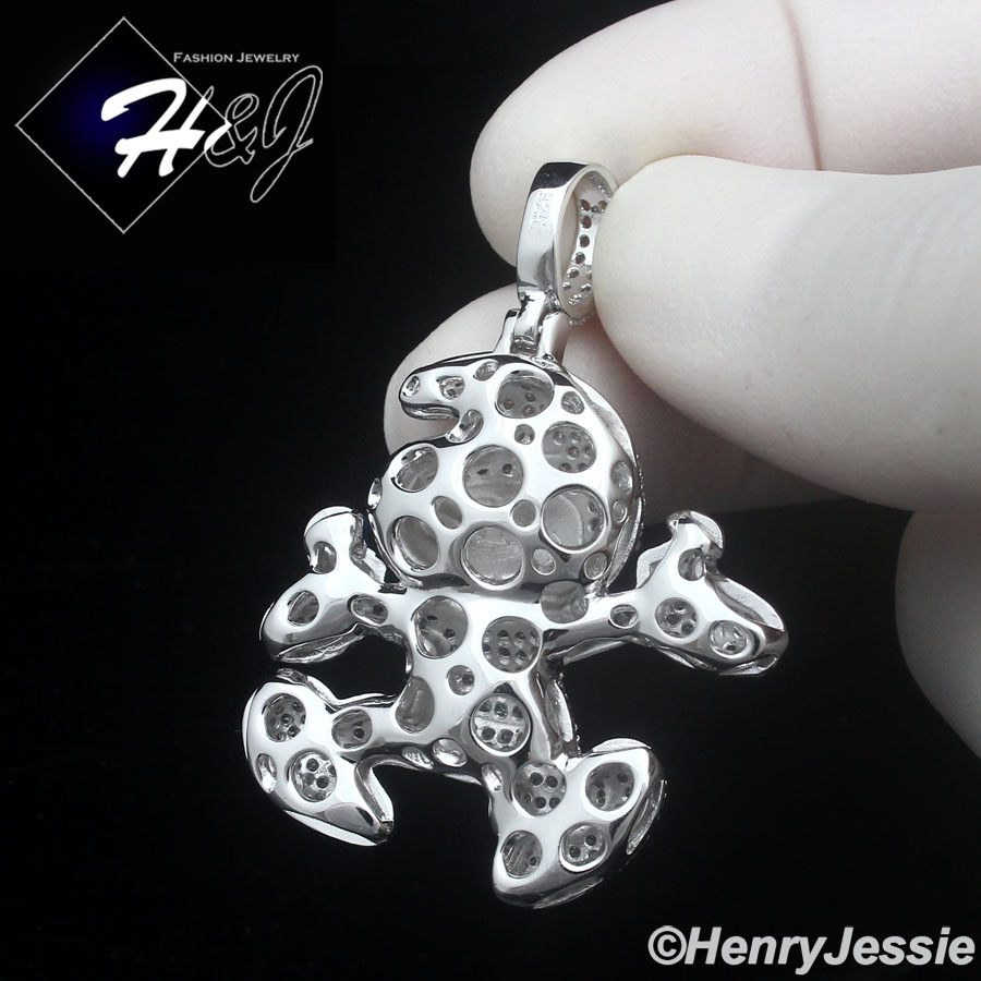 MEN SOLID 925 STERLING SILVER ICY BLING CZ 3D BLUE SMURF CARTOON PENDANT*SP476