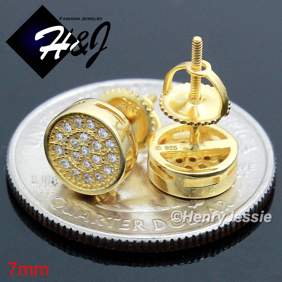 MEN 925 STERLING SILVER 7MM BLING SILVER/GOLD ROUND SCREW BACK STUD EARRING*E109