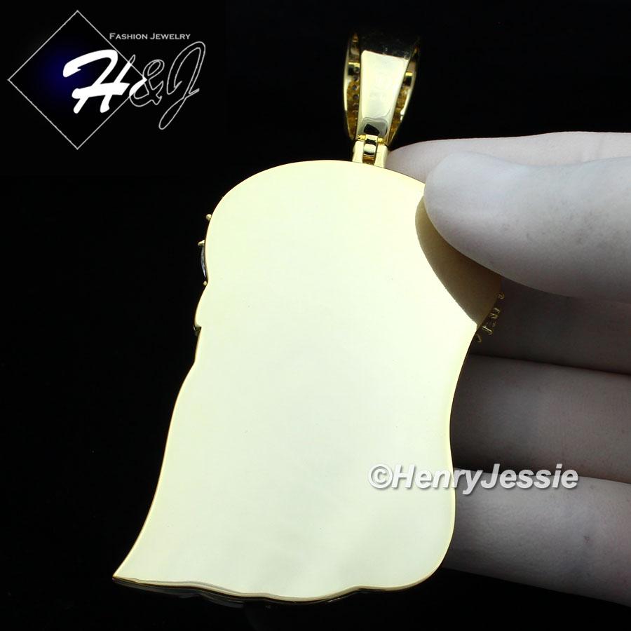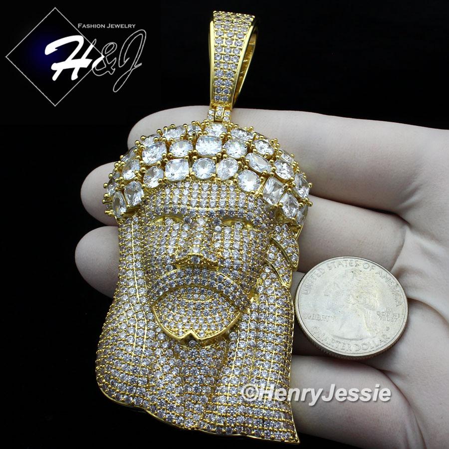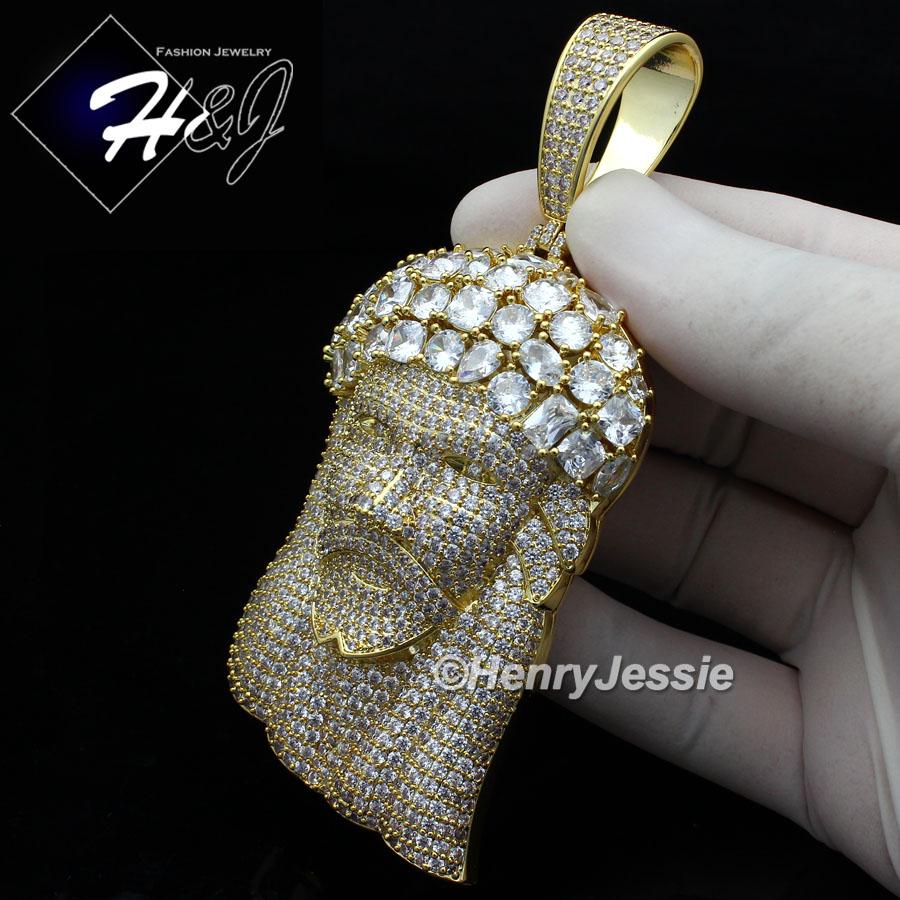 > Fashion Jewelry > Men > Pendants > MEN 14K GOLD FINISH FULL LAB DIAMOND OVERSIZE ICED GOLD 3D JESUS FACE PENDANT*BGP7