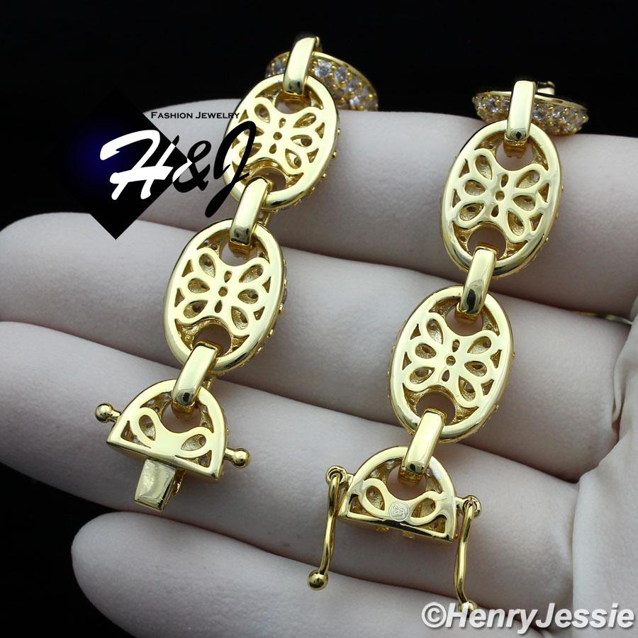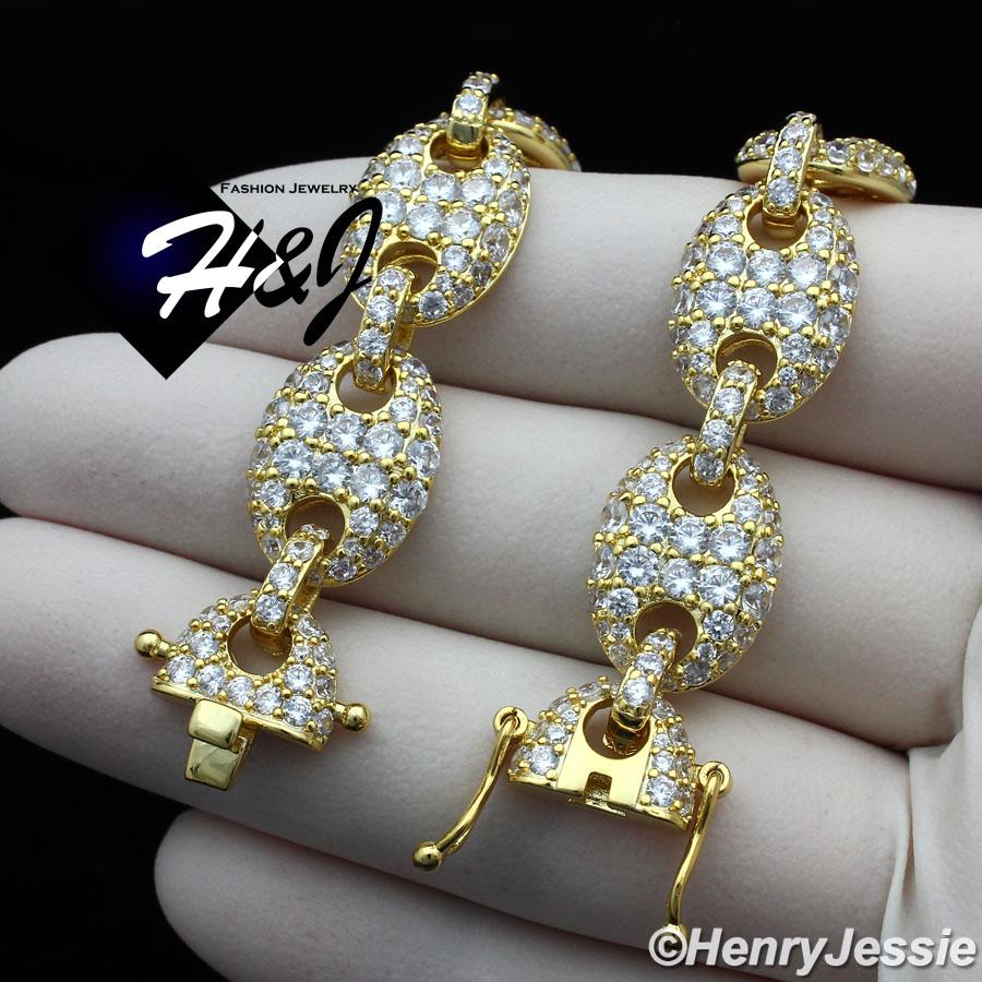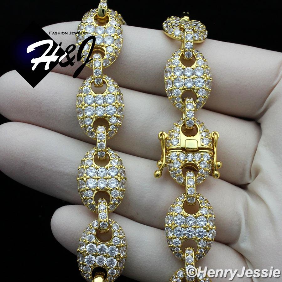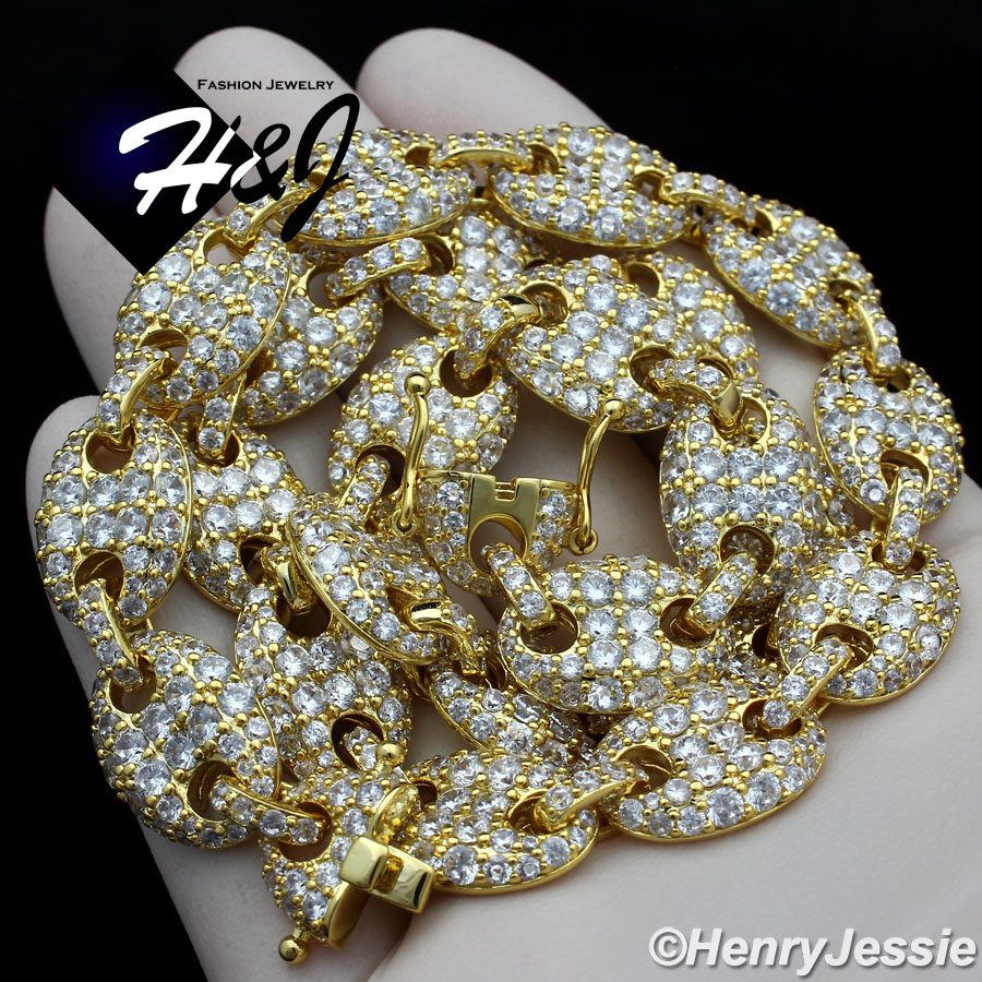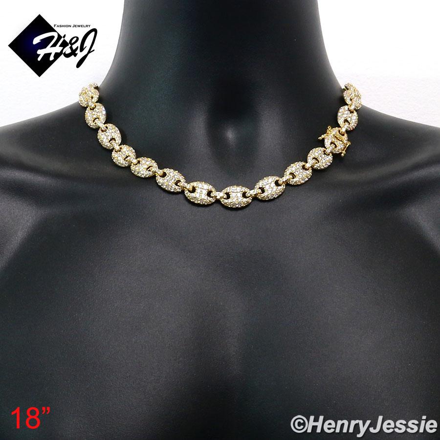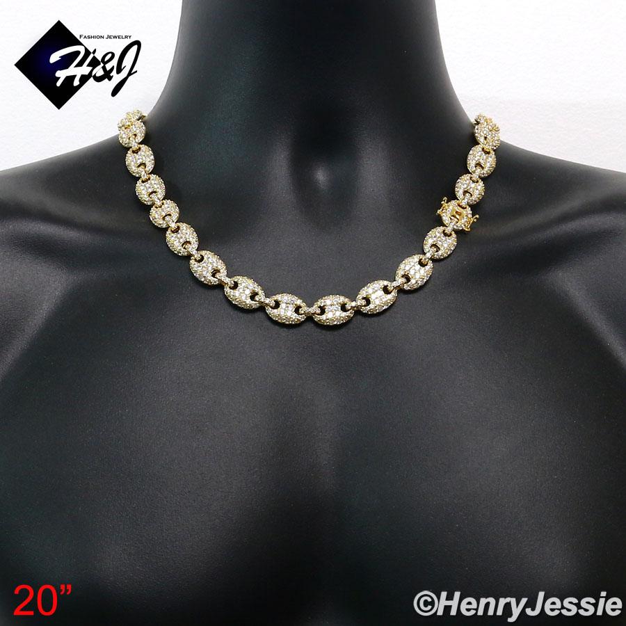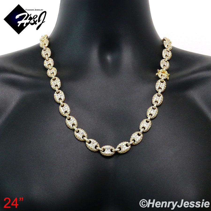 > BLING DIAMOND Jewelry > Men > Necklaces > 18-24"MEN 14K GOLD FINISH 12MM LAB DIAMOND GOLD ICED MARINER GUCCI LINK NECKLACE*BGN8