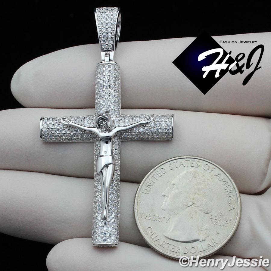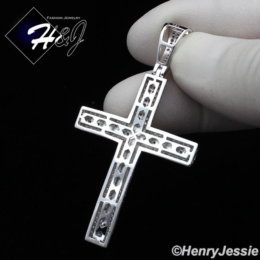 > Sterling Silver > Men > Pendants > MEN 925 STERLING SILVER LAB DIAMOND ICY BLING SILVER JESUS CROSS CHARM PENDANT*SP230