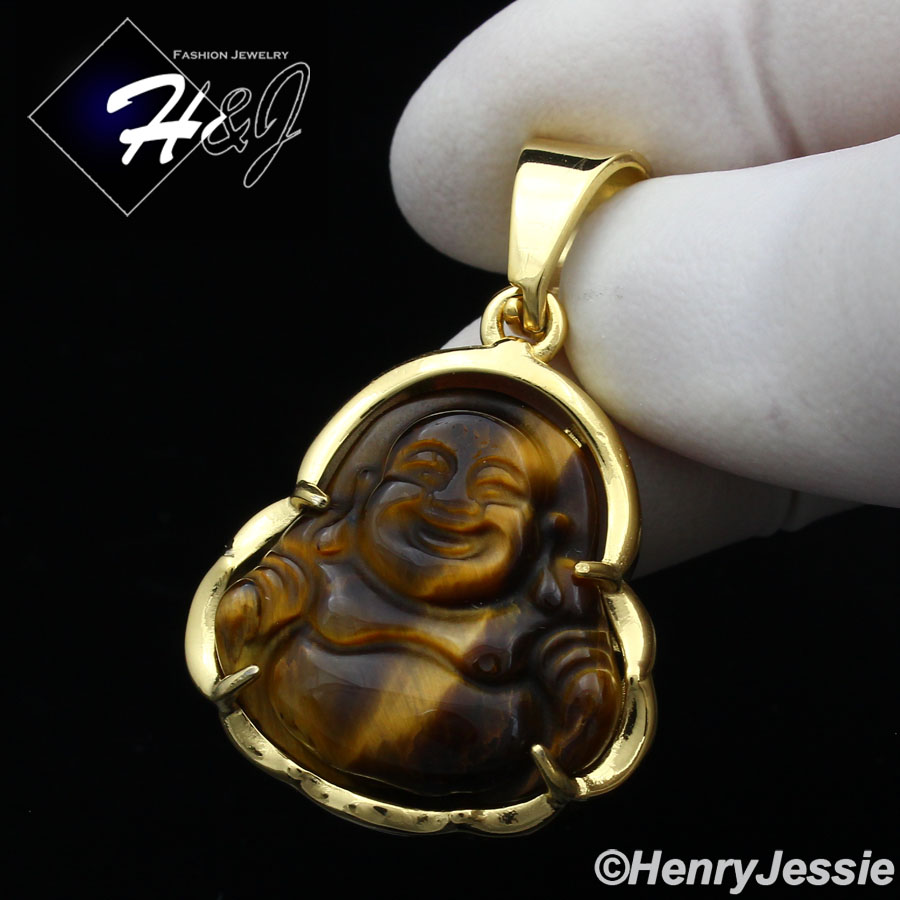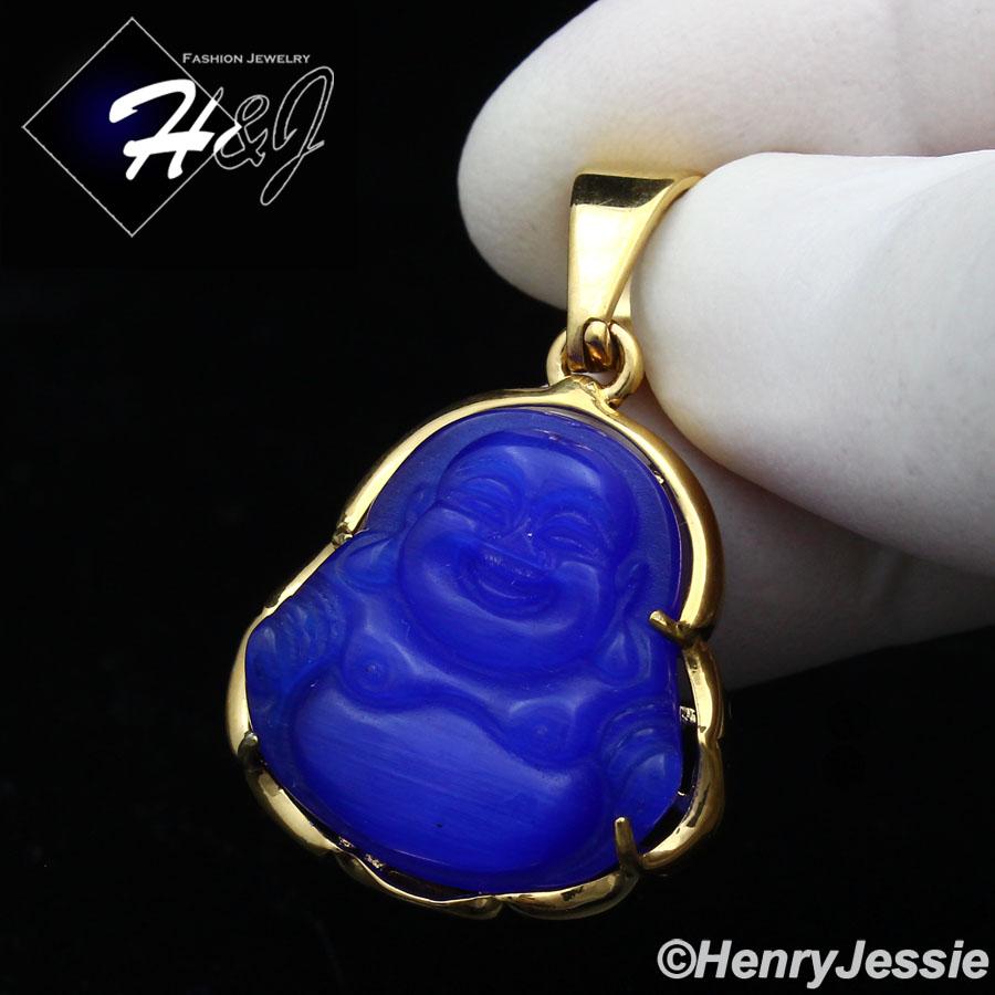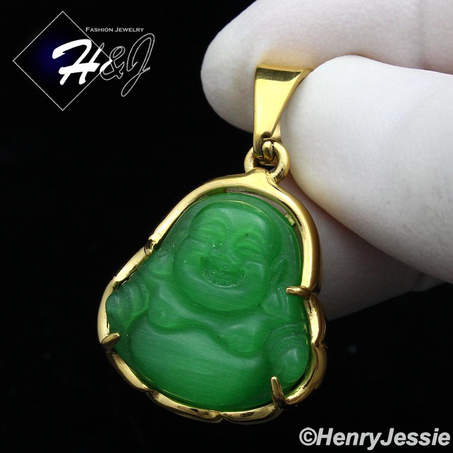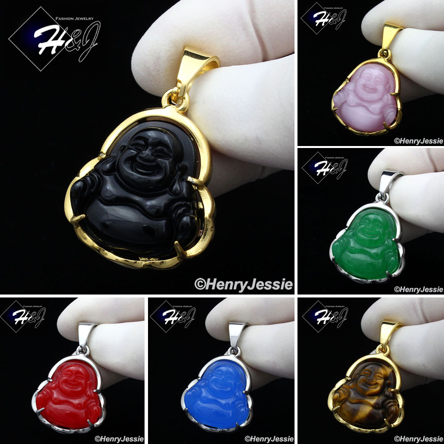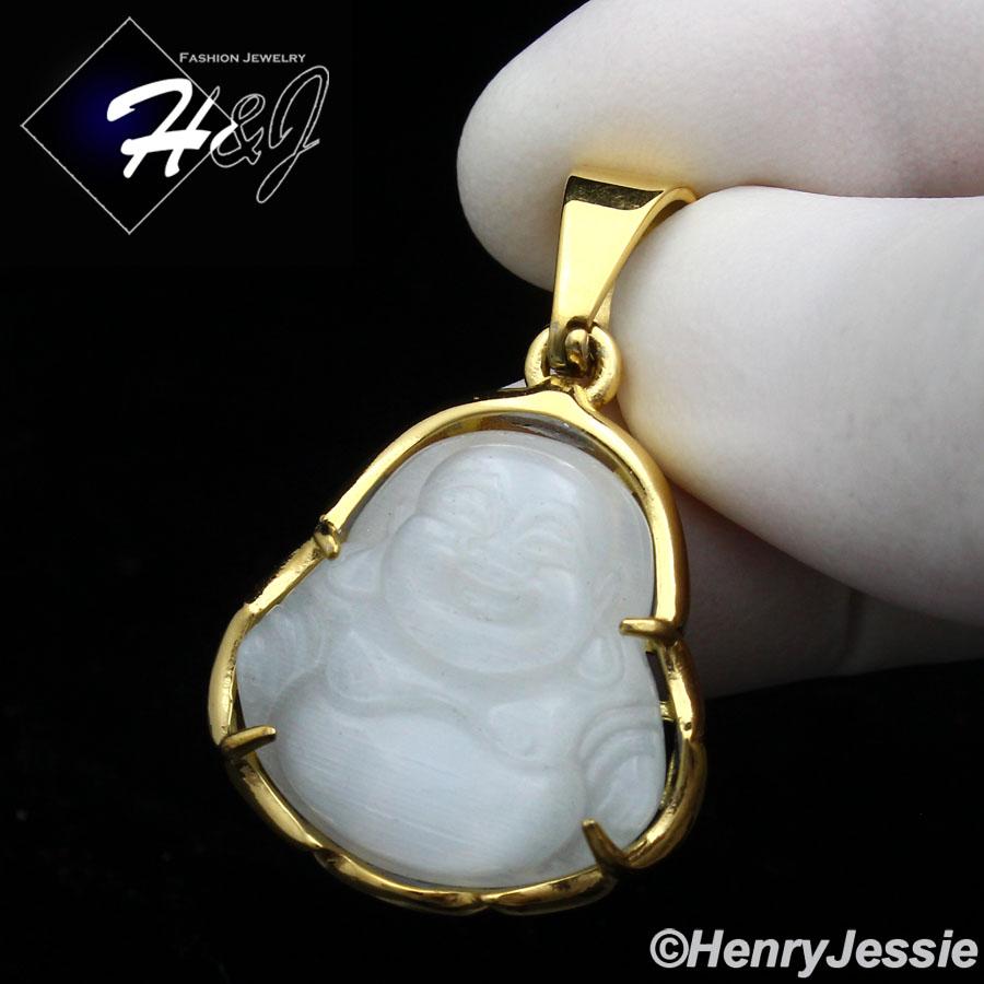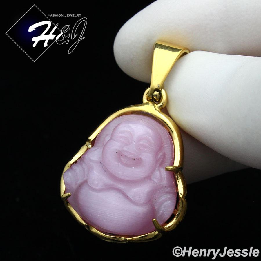 > Stainless Steel > Men > Pendants > MEN WOMEN Stainless Steel Jade/Onyx/Blue/Pink/White Gemstone Gold Buddha Pendant*GP123
