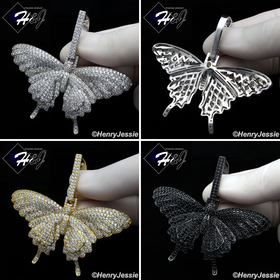 > Fashion Jewelry > Men > Pendants > MEN 14K WHITE GOLD FINISH LAB DIAMOND OVERSIZE ICED SILVER/GOLD/BALCK BUTTERFLY PENDANT*BP10