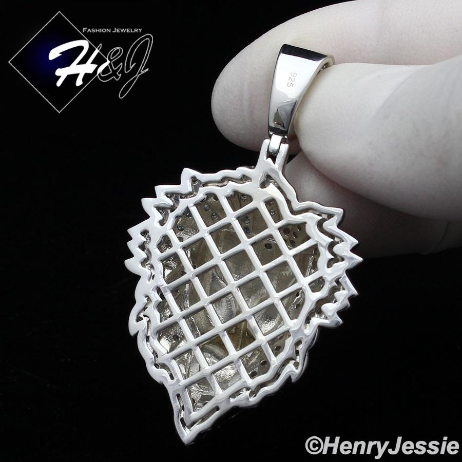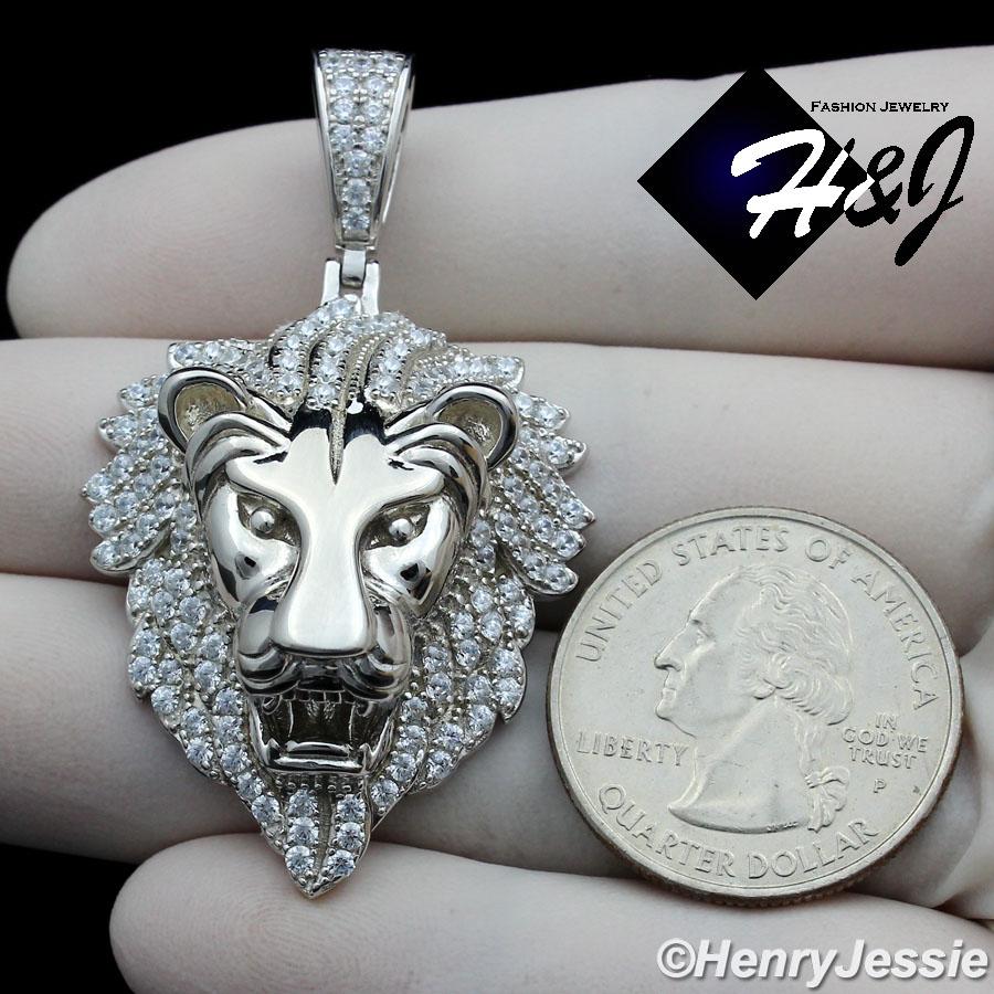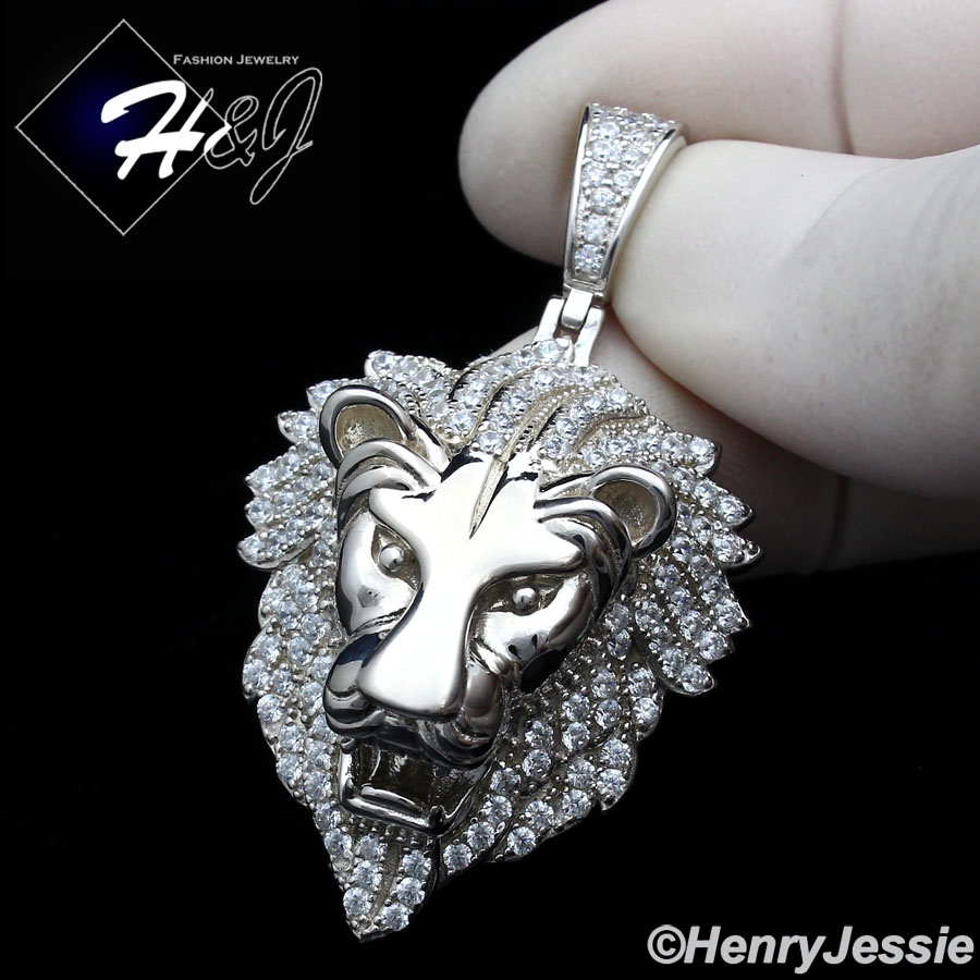 > Sterling Silver > Men > Pendants > MEN 925 STERLING SILVER ICY LAB DIAMOND SILVER 3D LION KING HEAD PENDANT*SP264