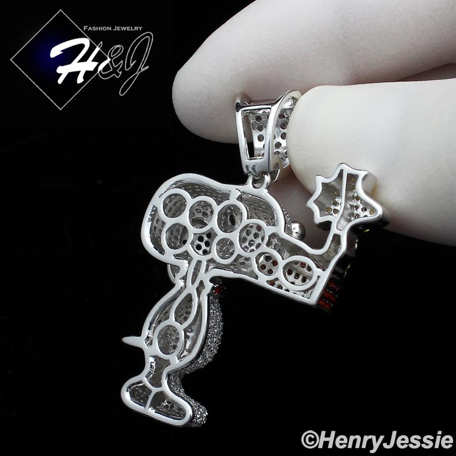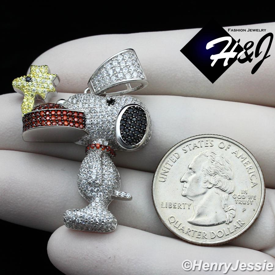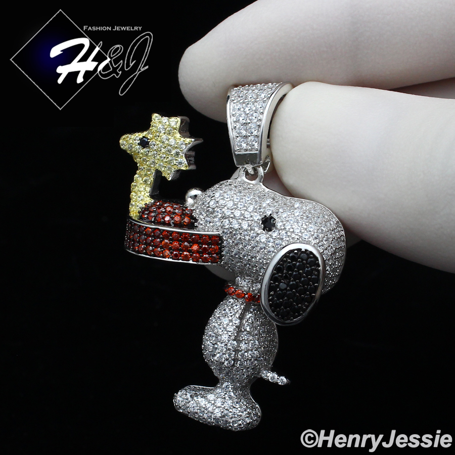 > Sterling Silver > Men > Pendants > MEN 925 STERLING SILVER FULL ICY LAB DIAMOND 3D SNOOPY DOG CHARM PENDANT*SP267