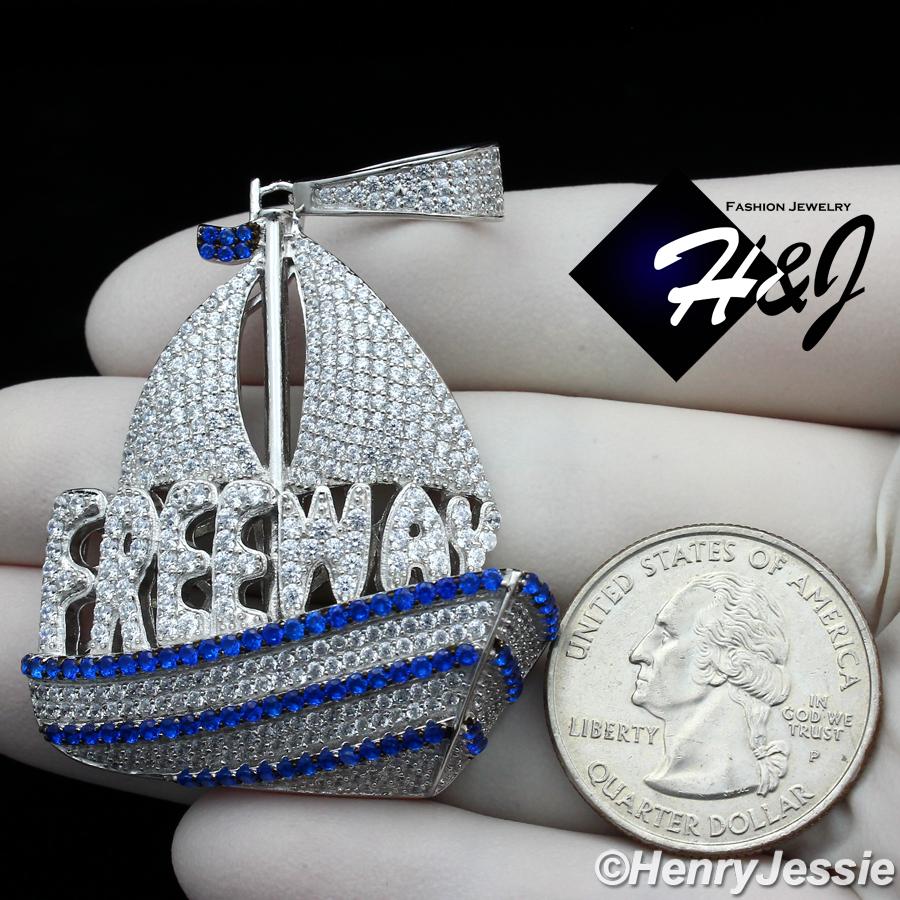 > Sterling Silver > Men > Pendants > MEN 925 STERLING SILVER FULL ICY SILVER/BLUE "FREEWAY" SAILING BOAT PENDANT*SP268