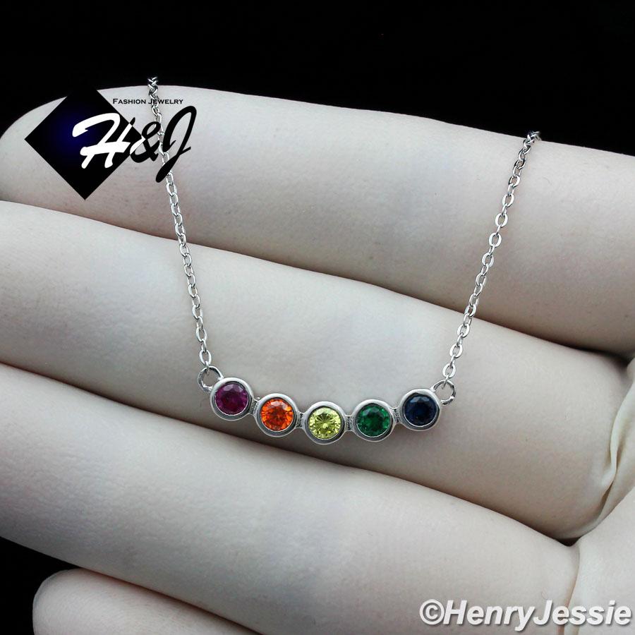 > Sterling Silver > Women > Necklace Pendant SETS > WOMEN 925 STERLING SILVER RAINBOW GEMSTONE ROUND CZ PENDANT CHAIN NECKLACE*WN3