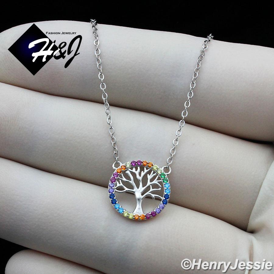 > Sterling Silver > Women > Necklace Pendant SETS > WOMEN 925 STERLING SILVER RAINBOW GEMSTONE TREE OF LIFE PENDANT NECKLACE*WN6