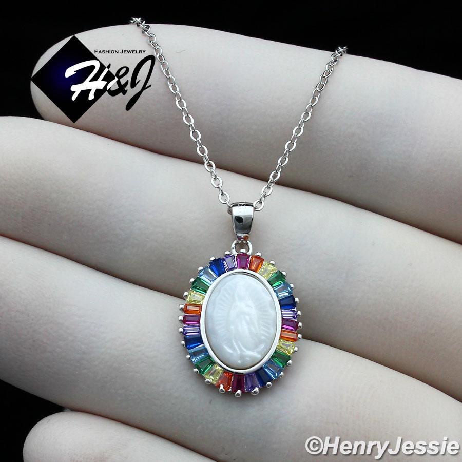 > Sterling Silver > Women > Necklace Pendant SETS > WOMEN 925 STERLING SILVER RAINBOW GEMSTONE VIRGIN MARY PENDANT CHAIN NECKLACE*WN9