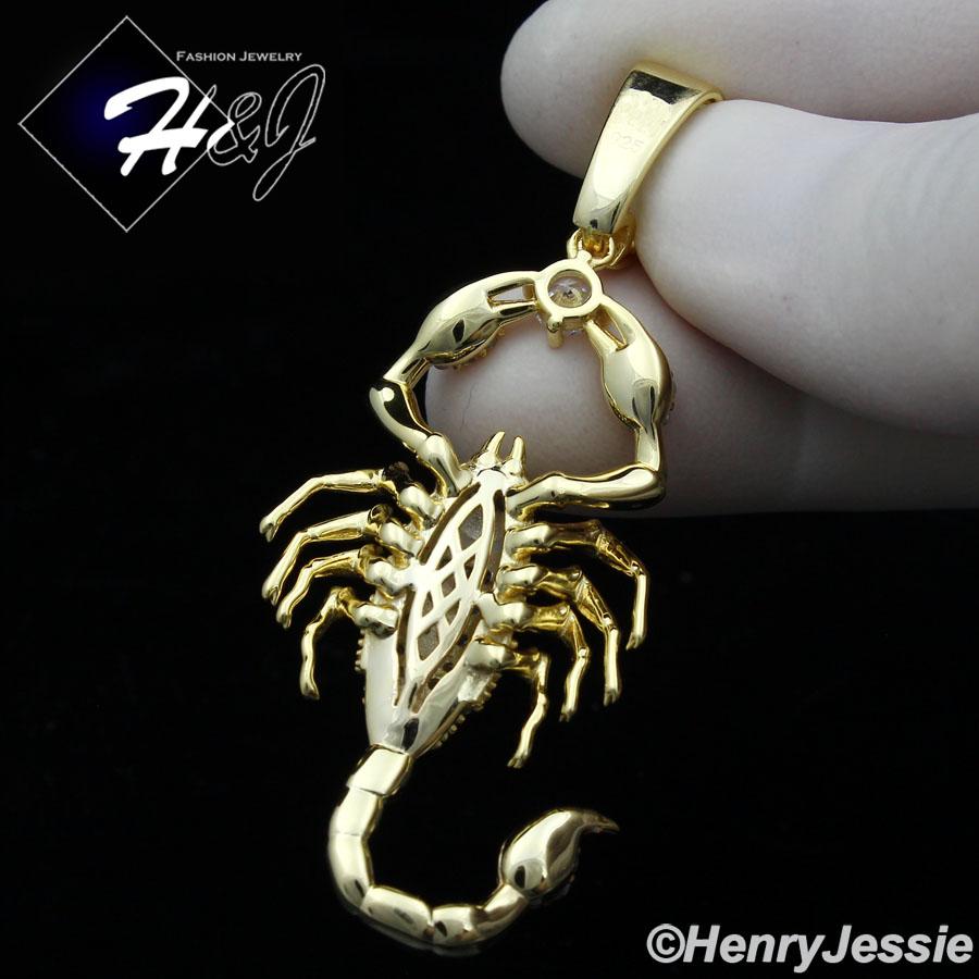 > Sterling Silver > Men > Pendants > MEN 925 STERLING SILVER ICY BLING LAB DIAMOND GOLD 3D SCORPION CHARM PENDANT*GP270