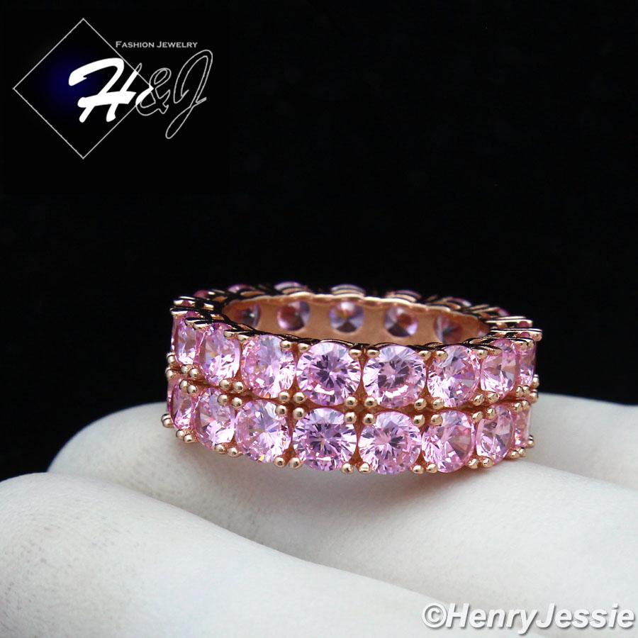 > Sterling Silver > Men > Rings > MEN WOMEN 925 STERLING SILVER ICY PINK CZ 8MM ROSE GOLD 2 ROW TENNIS BAND RING*RGR131