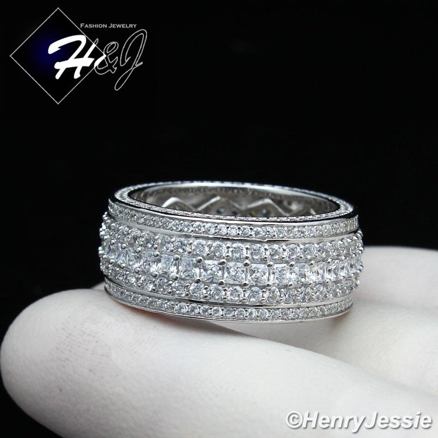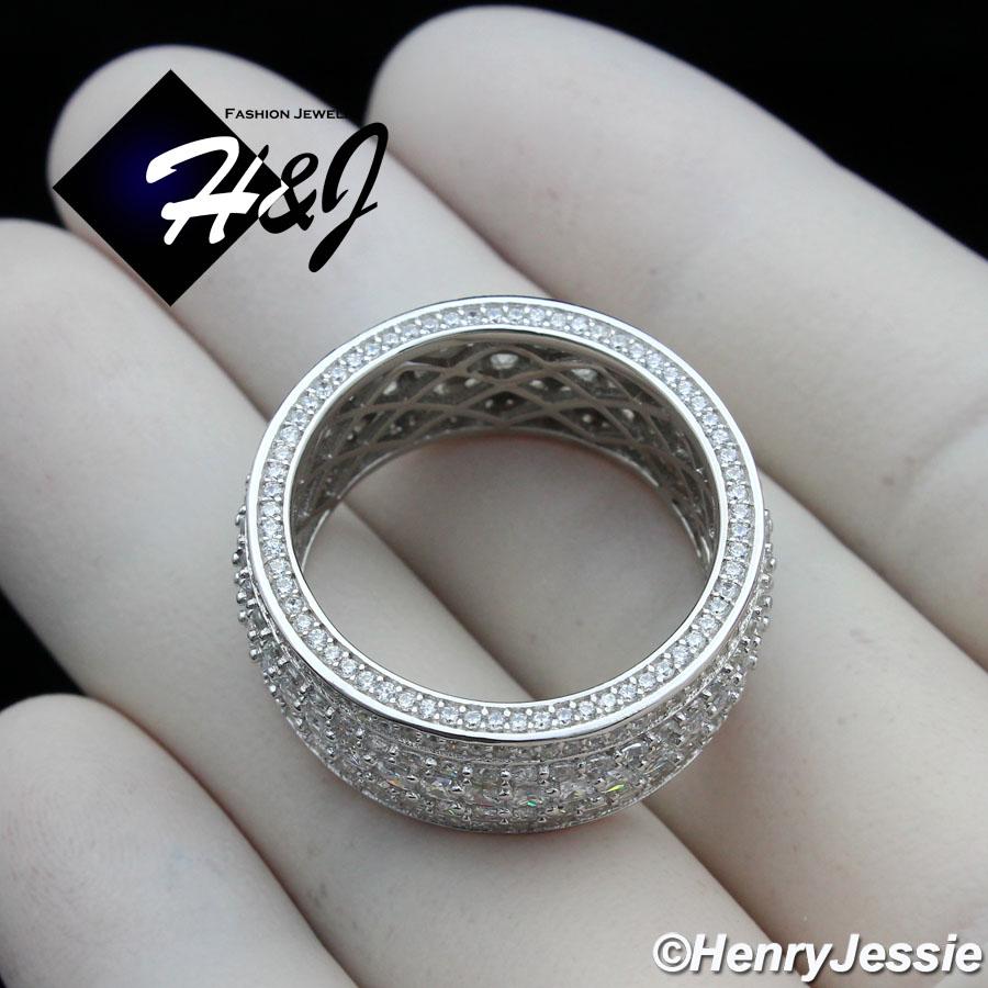 > Sterling Silver > Men > Rings > MEN 925 STERLING SILVER FULL LAB DIAMOND 10MM BLING WEDDING BAND RING*SR119
