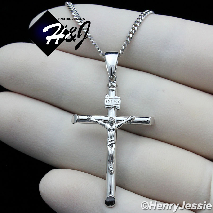 > Sterling Silver > Men > Necklace Pendant SETS > 16"-30"MEN WOMEN 925 STERLING SILVER 2MM MIAMI CUBAN CHAIN PLAIN JESUS CROSS PENDANT*SP213