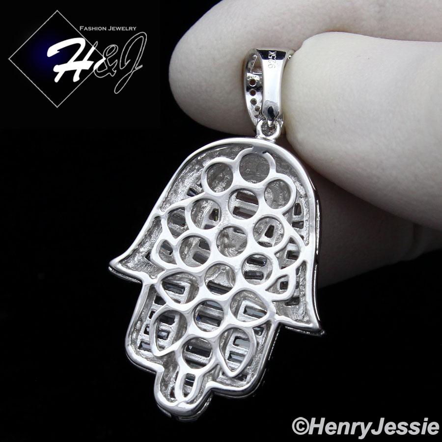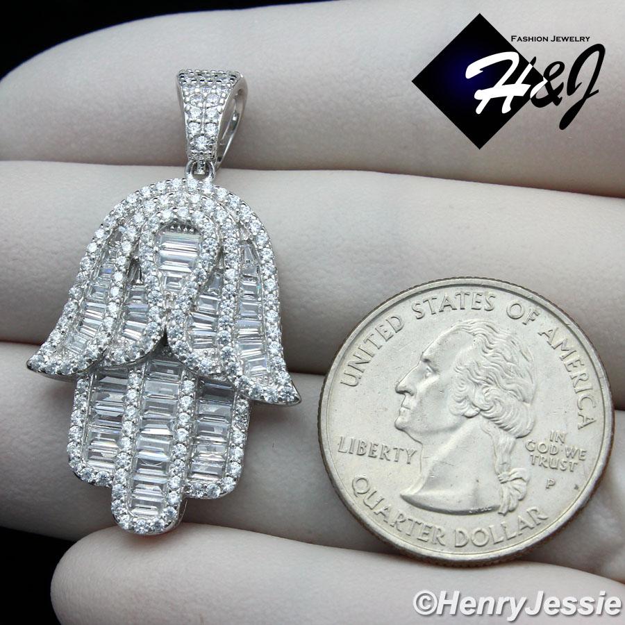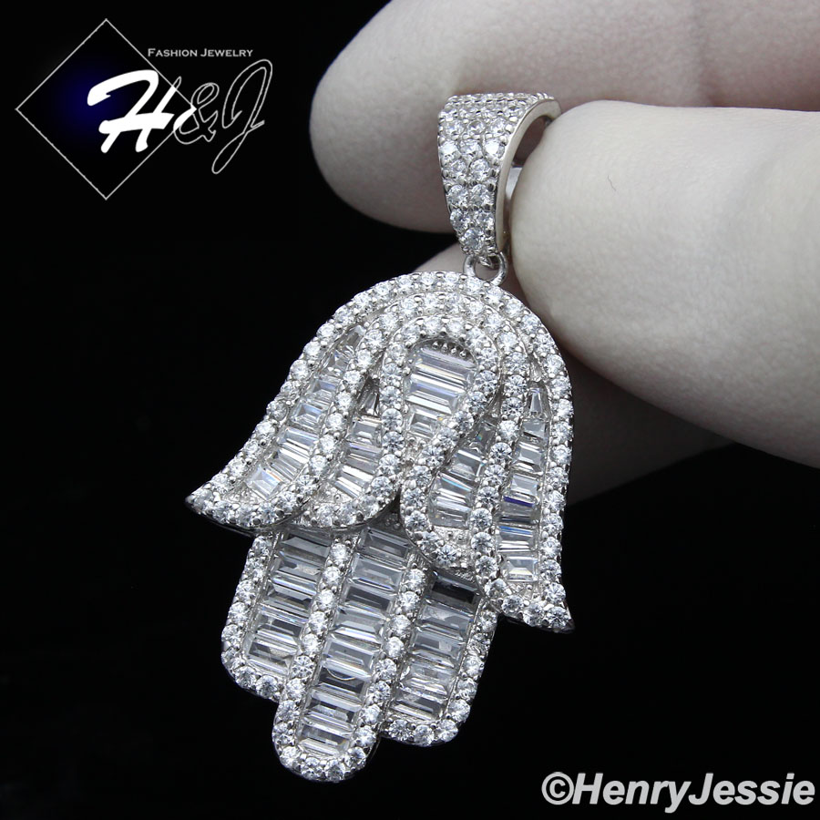 > Sterling Silver > Men > Pendants > MEN WOMEN 925 STERLING SILVER ICY LAB BAGUETTE DIAMOND SILVER HAMSA HAND CHARM PENDANT*SP278