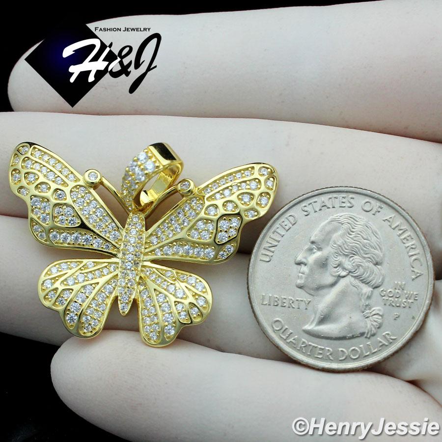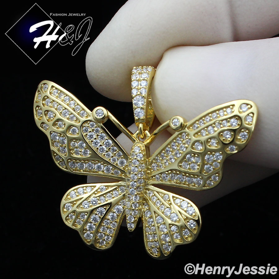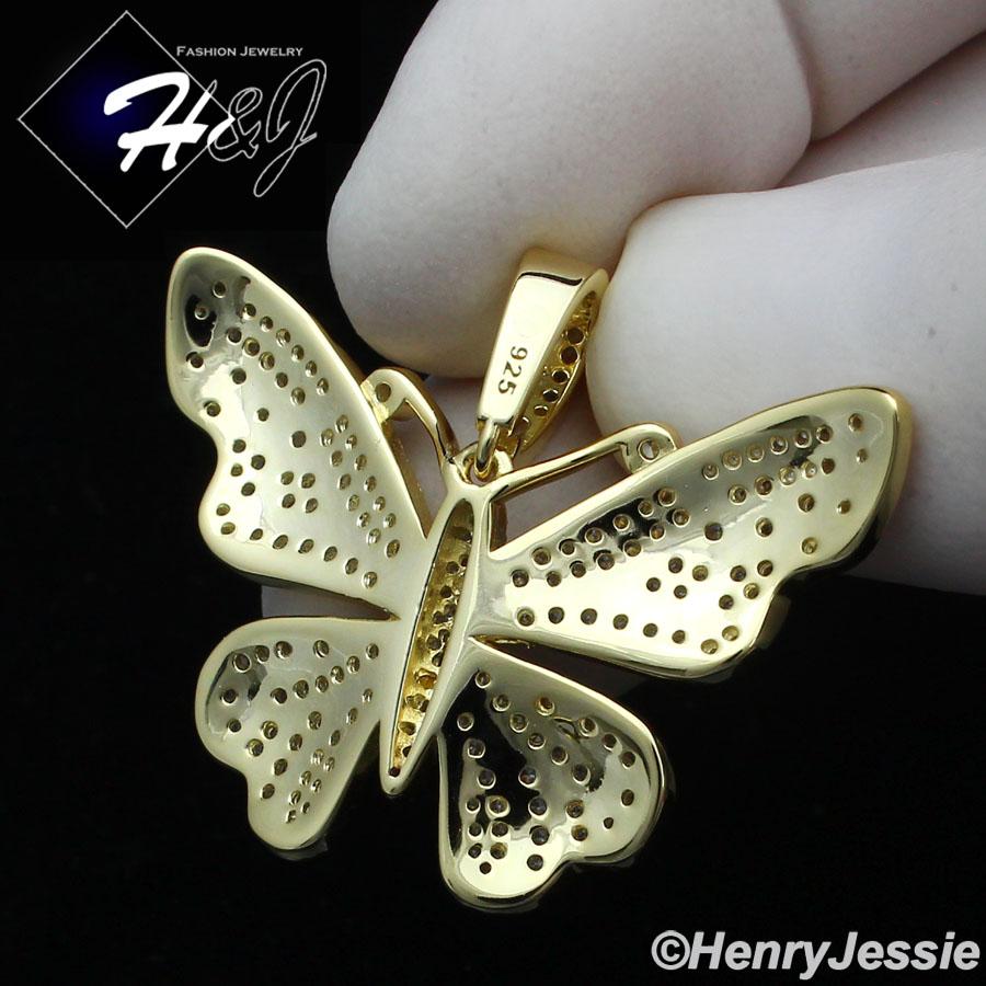> Sterling Silver > Men > Pendants > MEN WOMEN 925 STERLING SILVER ICY DIAMOND GOLD 3D BUTTERFLY CHARM PENDANT*GP284