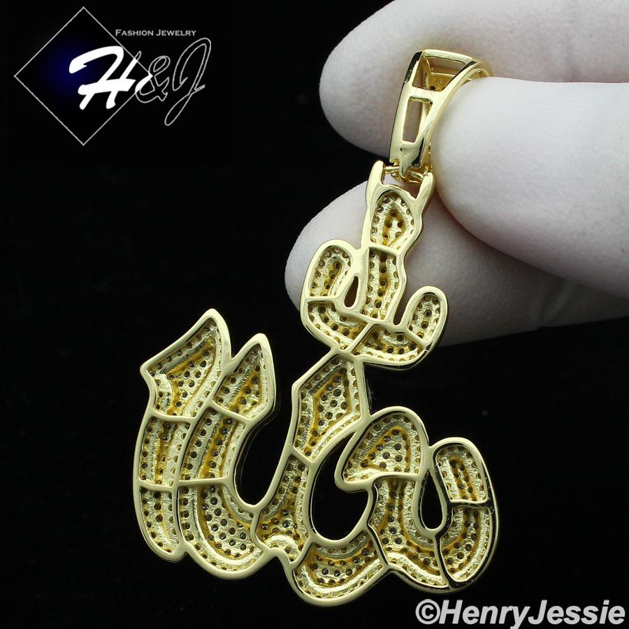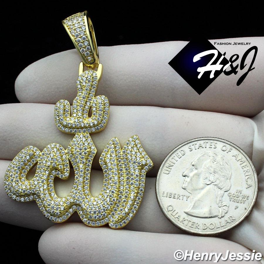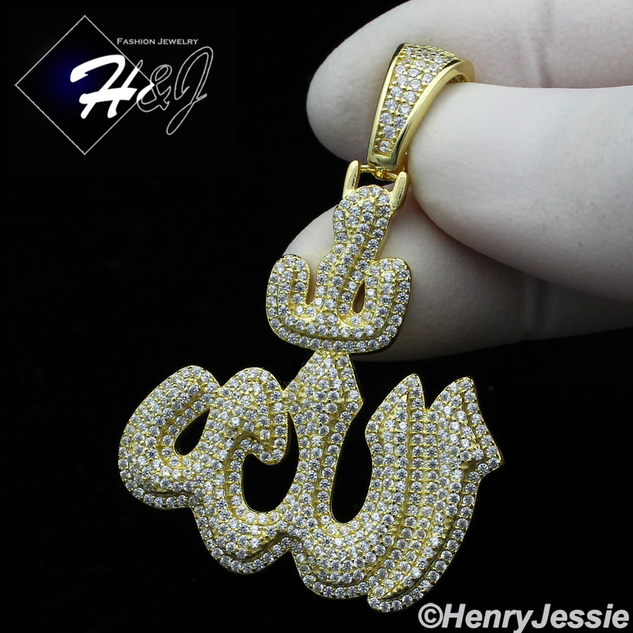 > Sterling Silver > Men > Pendants > MEN 925 STERLING SILVER ICY BLING DIAMOND 3D GOLD MUSLIM ALLAH CHARM PENDANT*GP288