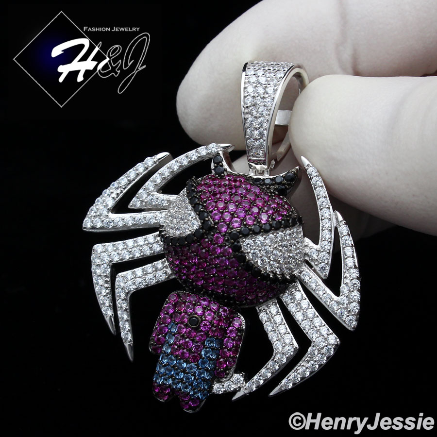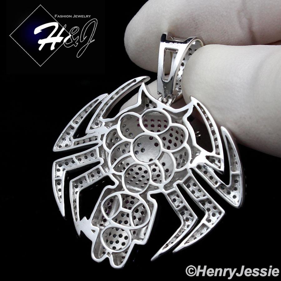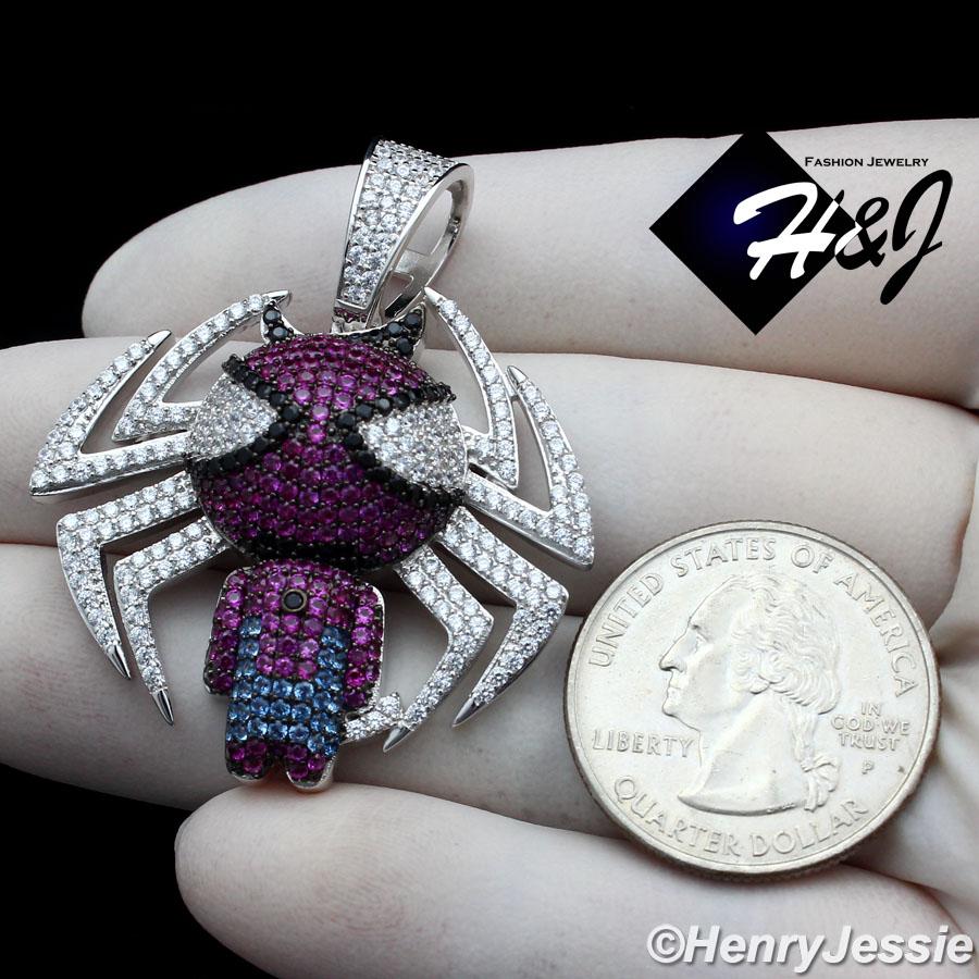 > Sterling Silver > Men > Pendants > MEN 925 STERLING SILVER FULL ICY BLING CZ 3D SPIDER MAN CHARM PENDANT*SP302