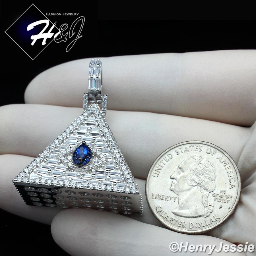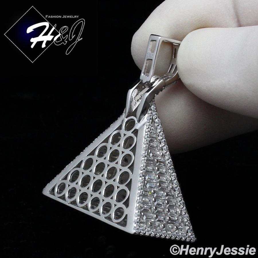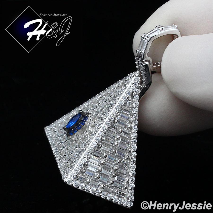 > Sterling Silver > Men > Pendants > 925 STERLING SILVER ICY DIAMOND SILVER EYE OF HORUS 3D SILVER PYRAMID PENDANT*SP312