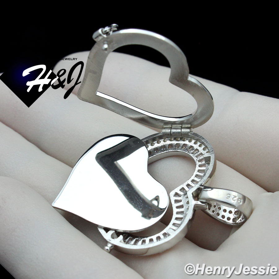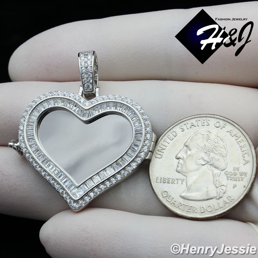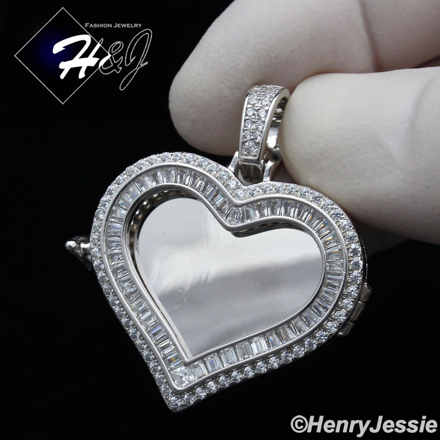 > Sterling Silver > Men > Pendants > MEN WOMEN 925 STERLING SILVER ICY DIAMOND SILVER PHOTO LOCKET HEART PENDANT*SP316