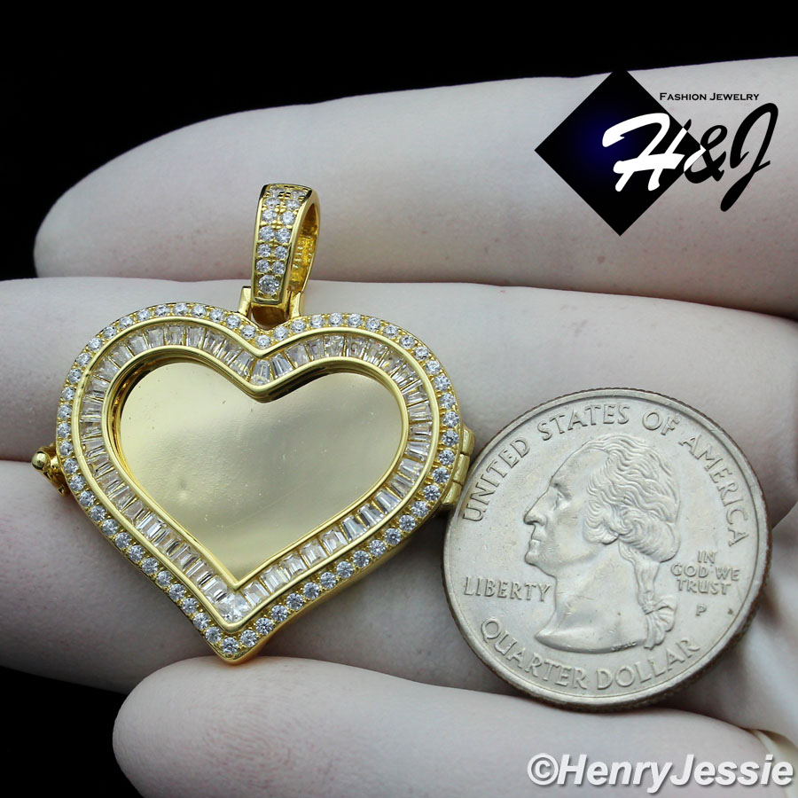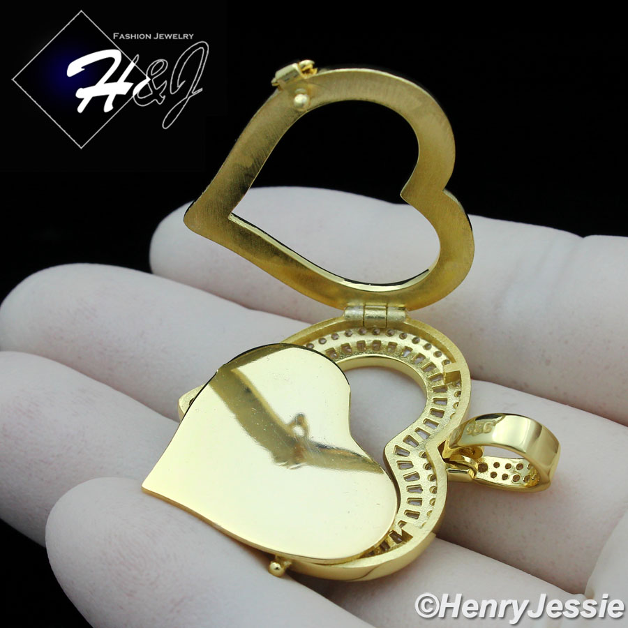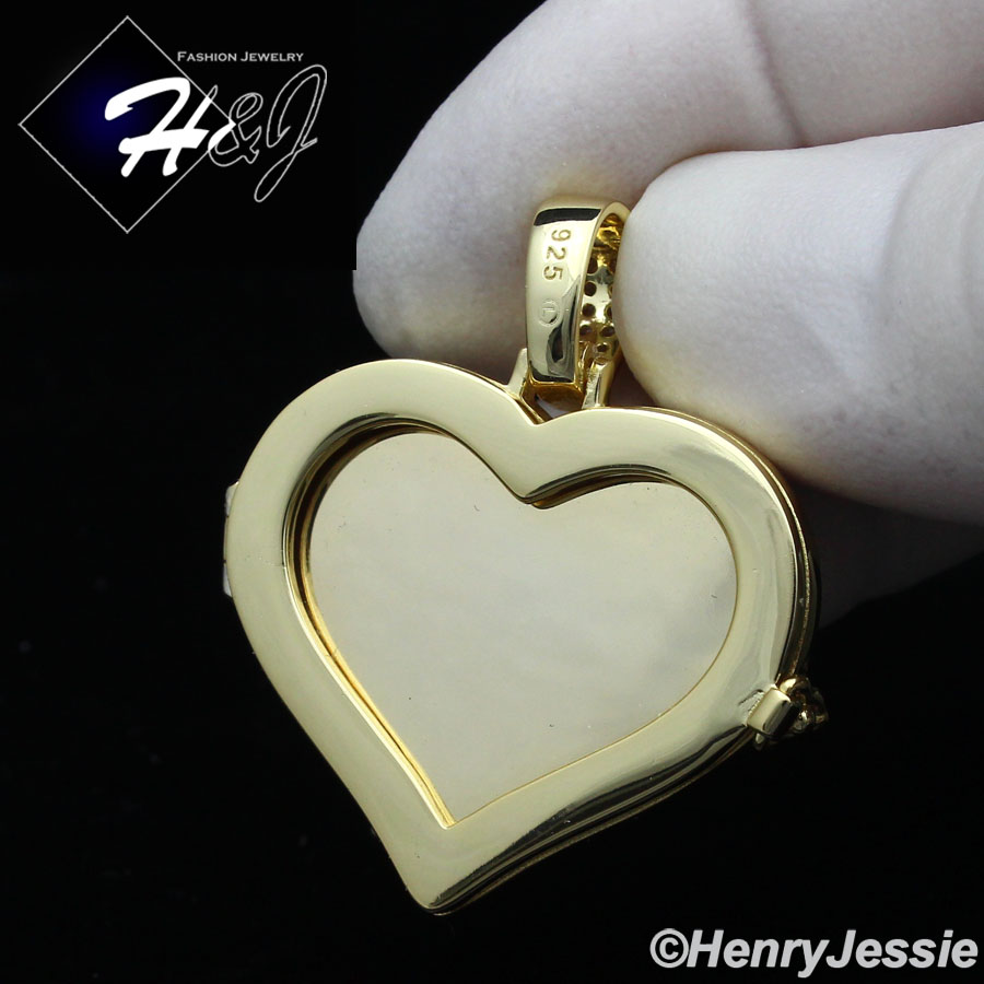 > Sterling Silver > Men > Pendants > MEN WOMEN 925 STERLING SILVER ICY DIAMOND GOLD 3D PHOTO LOCKET HEART PENDANT*GP316