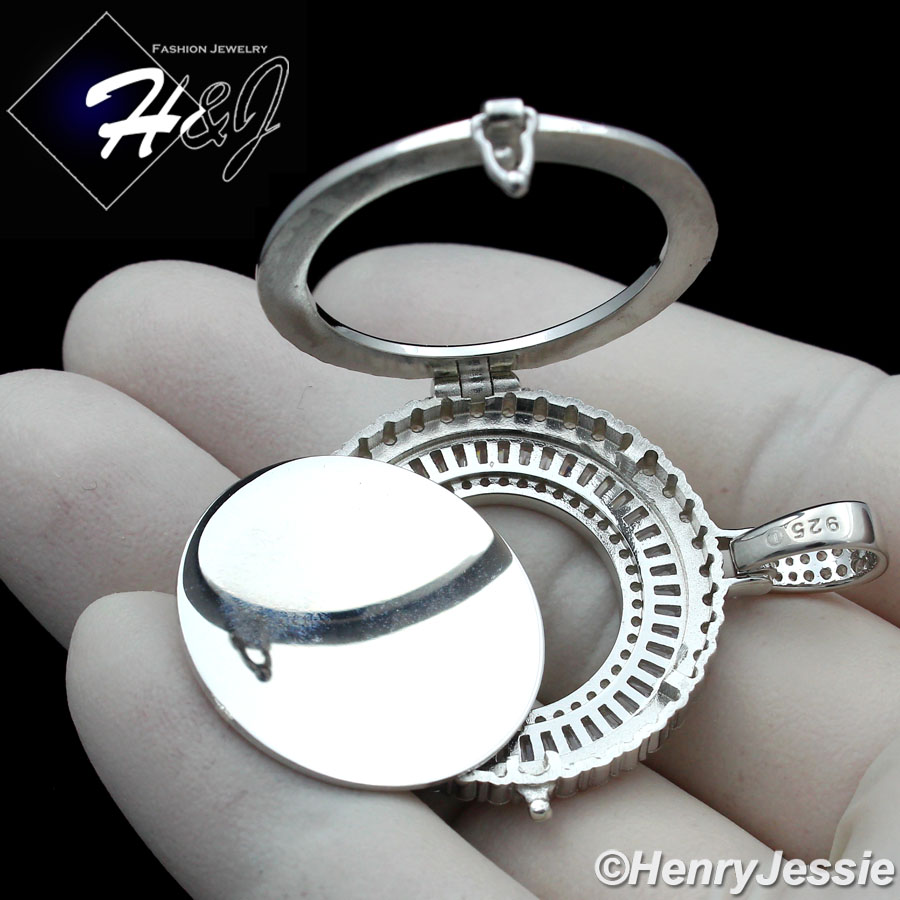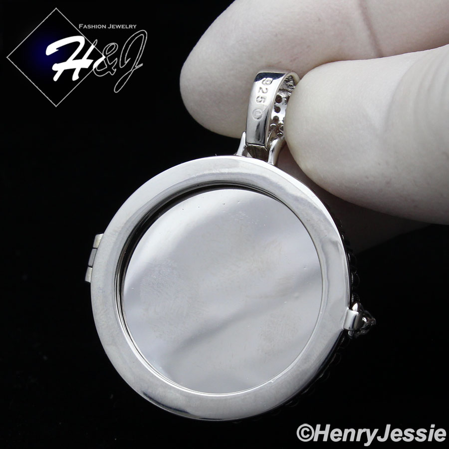 > Sterling Silver > Men > Pendants > MEN WOMEN 925 STERLING SILVER ICY DIAMOND SILVER PHOTO LOCKET ROUND PENDANT*SP317
