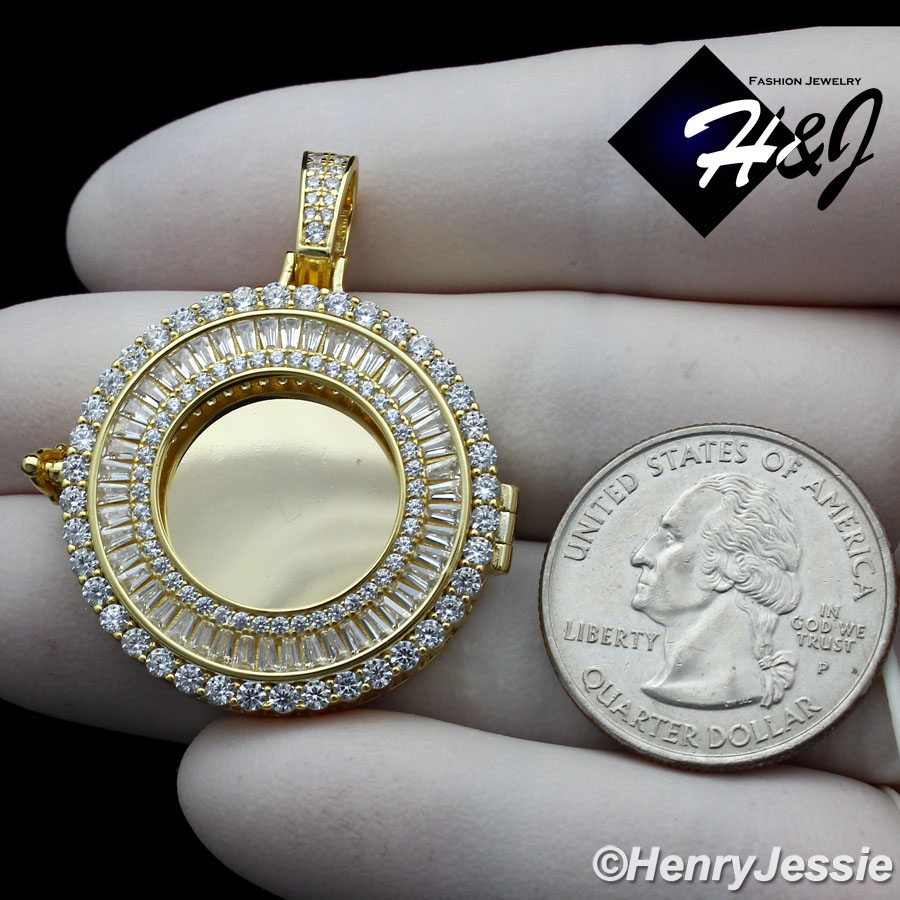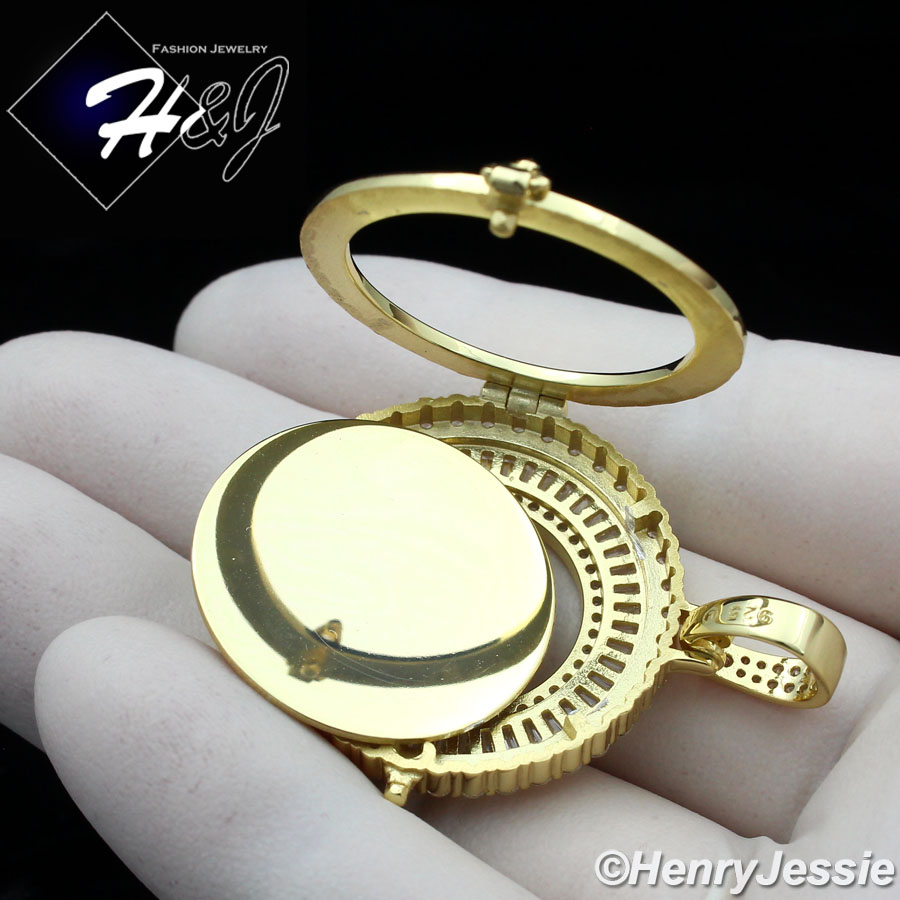 > Sterling Silver > Men > Pendants > MEN WOMEN 925 STERLING SILVER ICY DIAMOND GOLD PHOTO LOCKET ROUND PENDANT*GP317