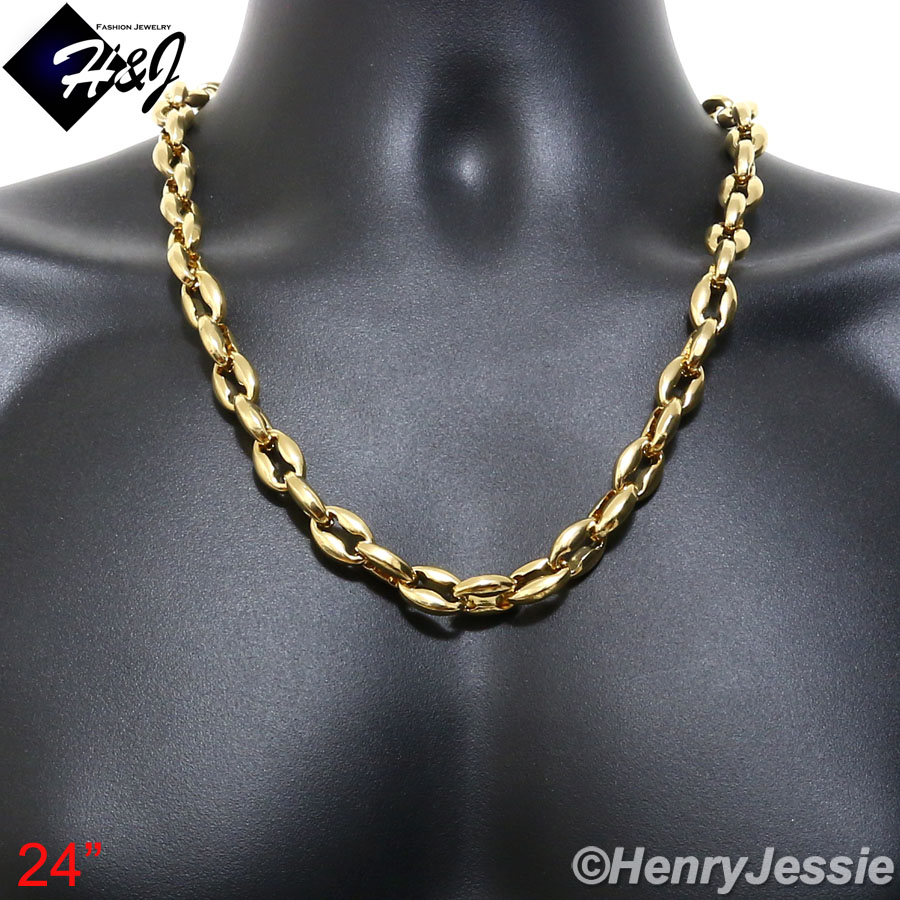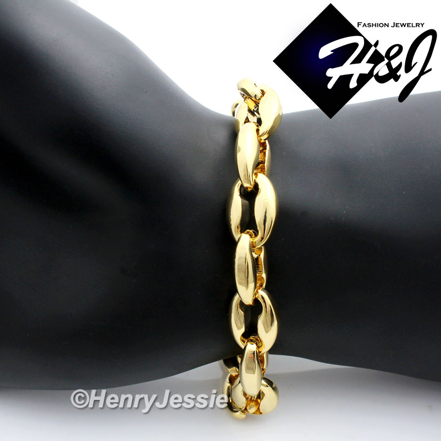 > Stainless Steel > Men > Necklaces > 7.5"-40"MEN Stainless Steel WIDE 12mm Gold Puffed Mariner Link Chain Bracelet Necklace*GN147