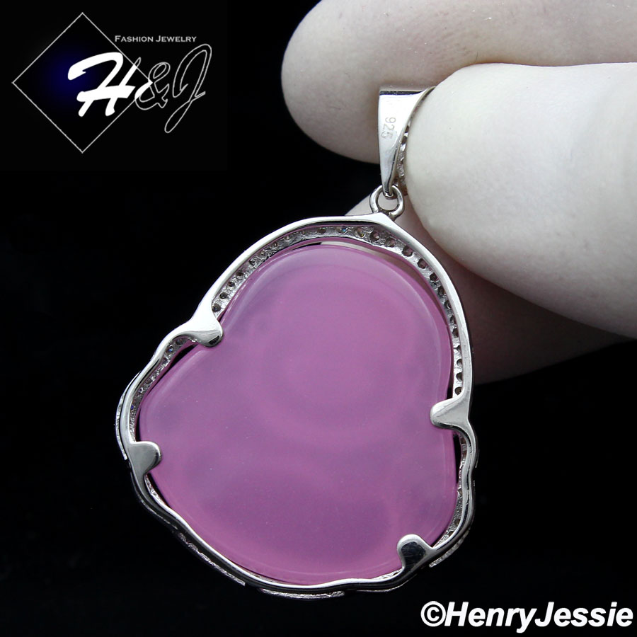 > Sterling Silver > Women > Pendants > WOMEN 925 STERLING SILVER ICY DIAMOND PINK GEMSTONE BUDDHA CHARM PENDANT*SP236