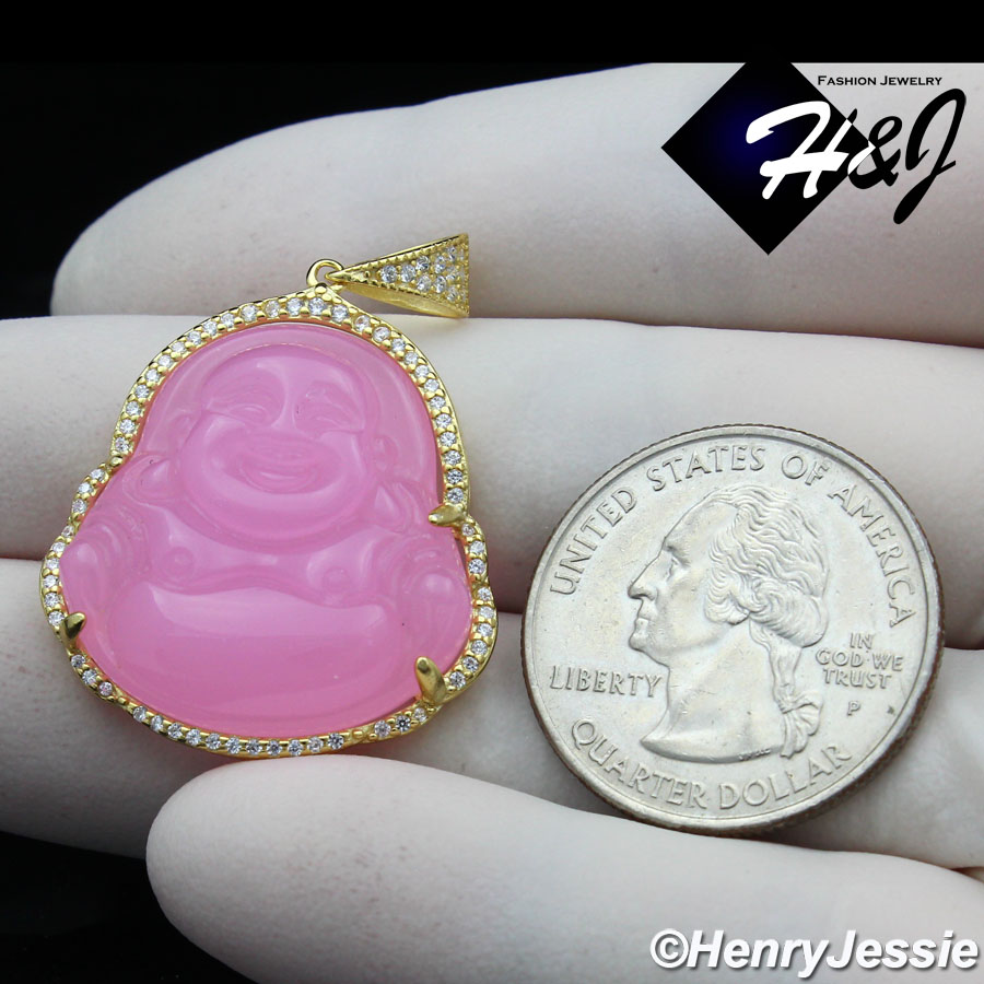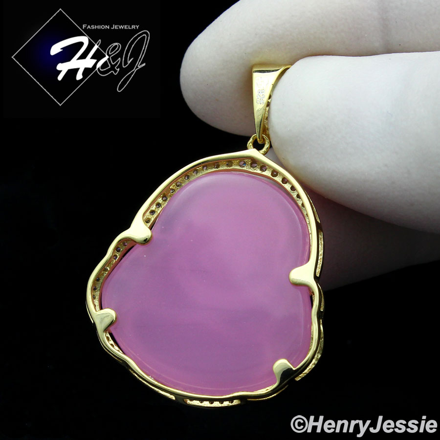 > Sterling Silver > Women > Pendants > WOMEN 925 STERLING SILVER ICY DIAMOND PINK GEMSTONE BUDDHA GOLD CHARM PENDANT*GP236