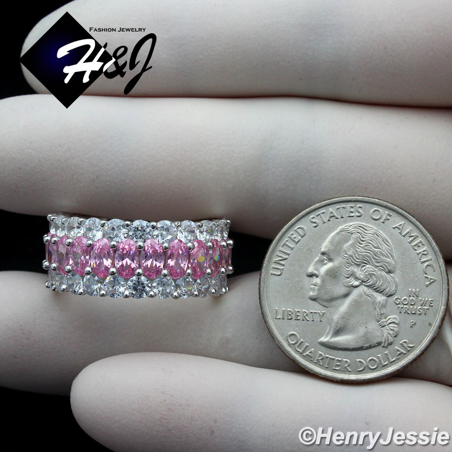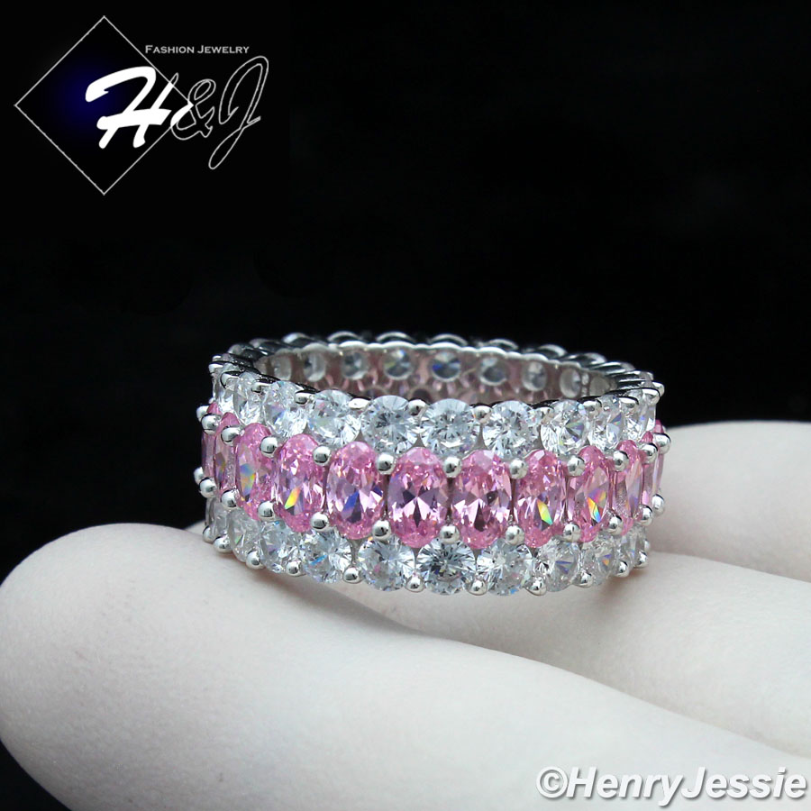 > Sterling Silver > Men > Rings > WOMEN 925 STERLING SILVER FULL ICY PINK DIAMOND 10MM BLING WEDDING BAND RING*SR154