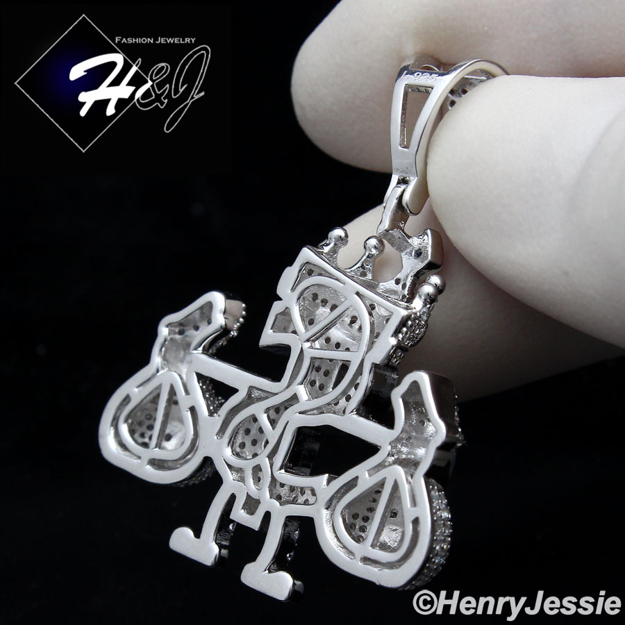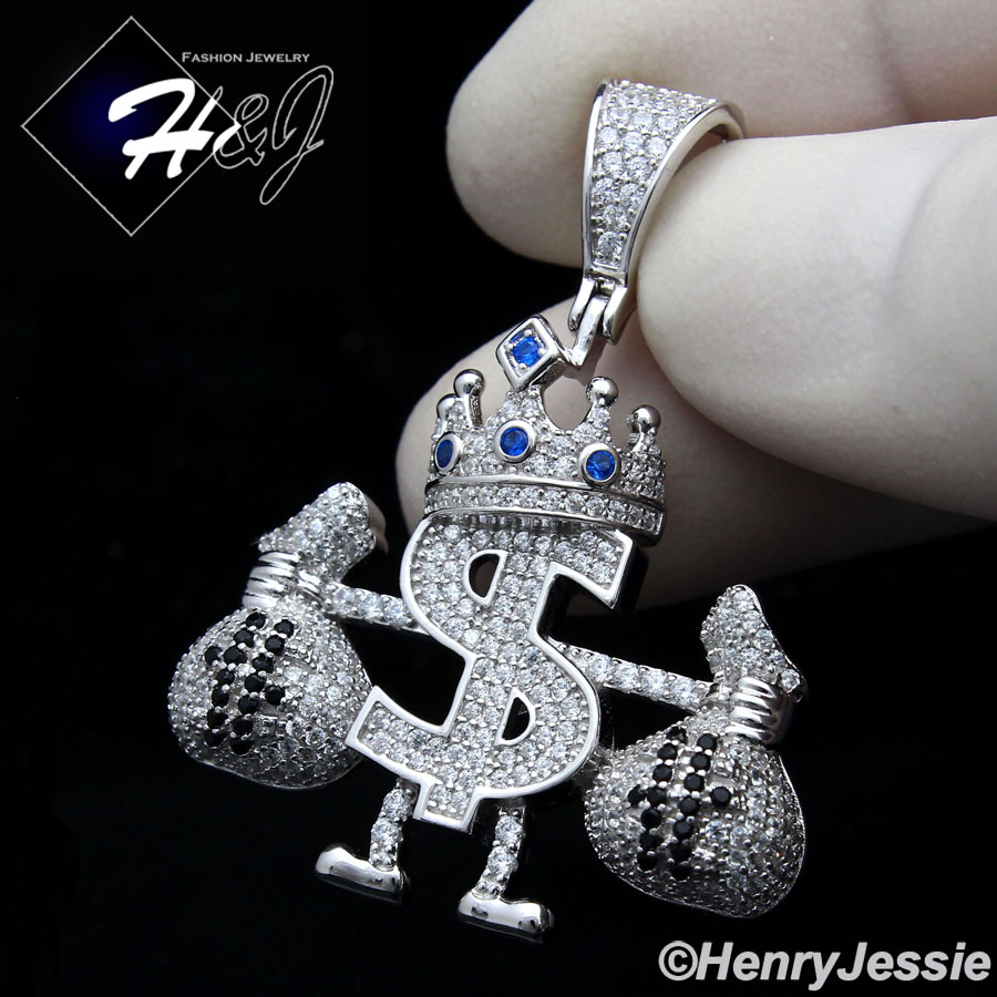 > Sterling Silver > Men > Pendants > MEN 925 STERLING SILVER ICY DIAMOND CROWN $ SIGN MONEY BAG 3D CHARM PENDANT*SP320