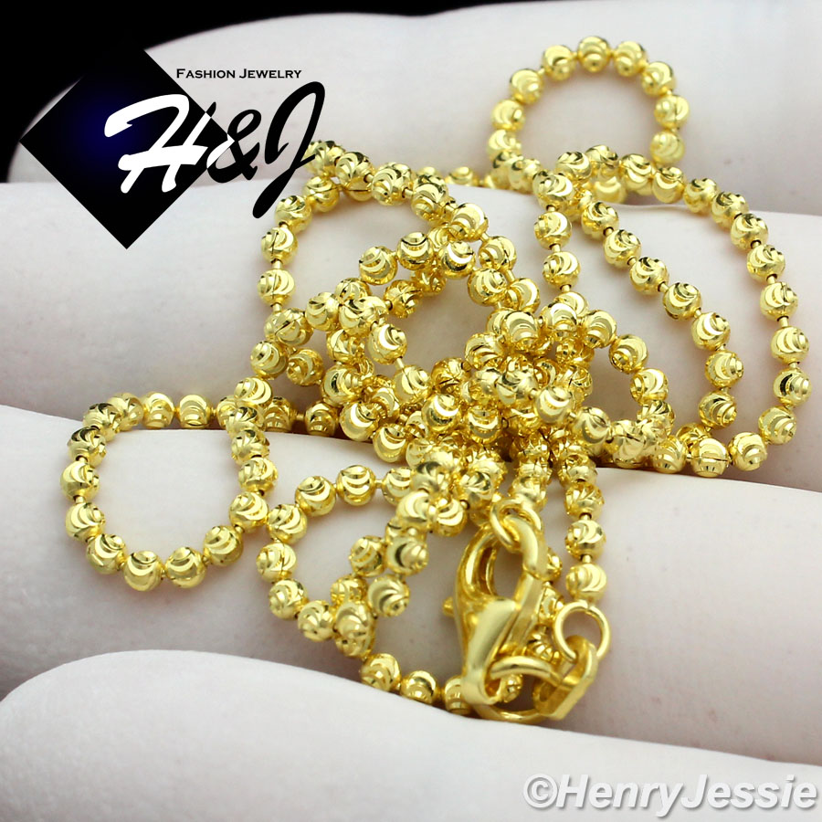 > Sterling Silver > Men > Necklaces > 16"18"20"22"24"26"28"30"MEN WOMEN 925 STERLING SILVER 1.5MM GOLD MOON CUT BEADED CHAIN NECKLACE*SN7