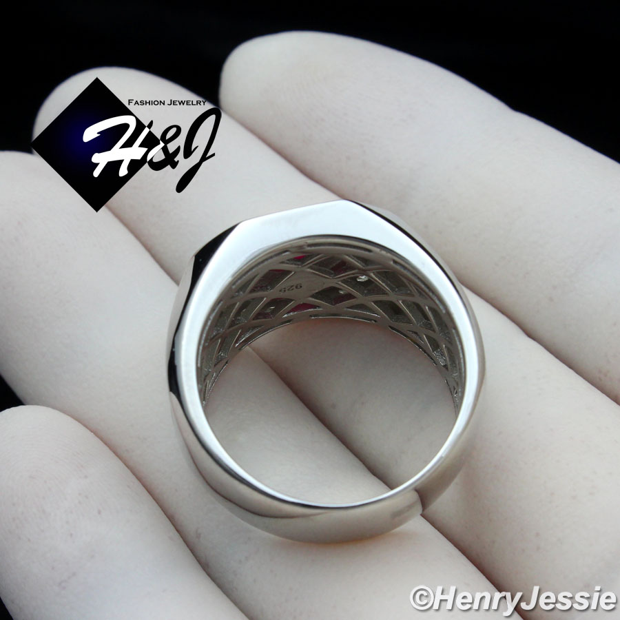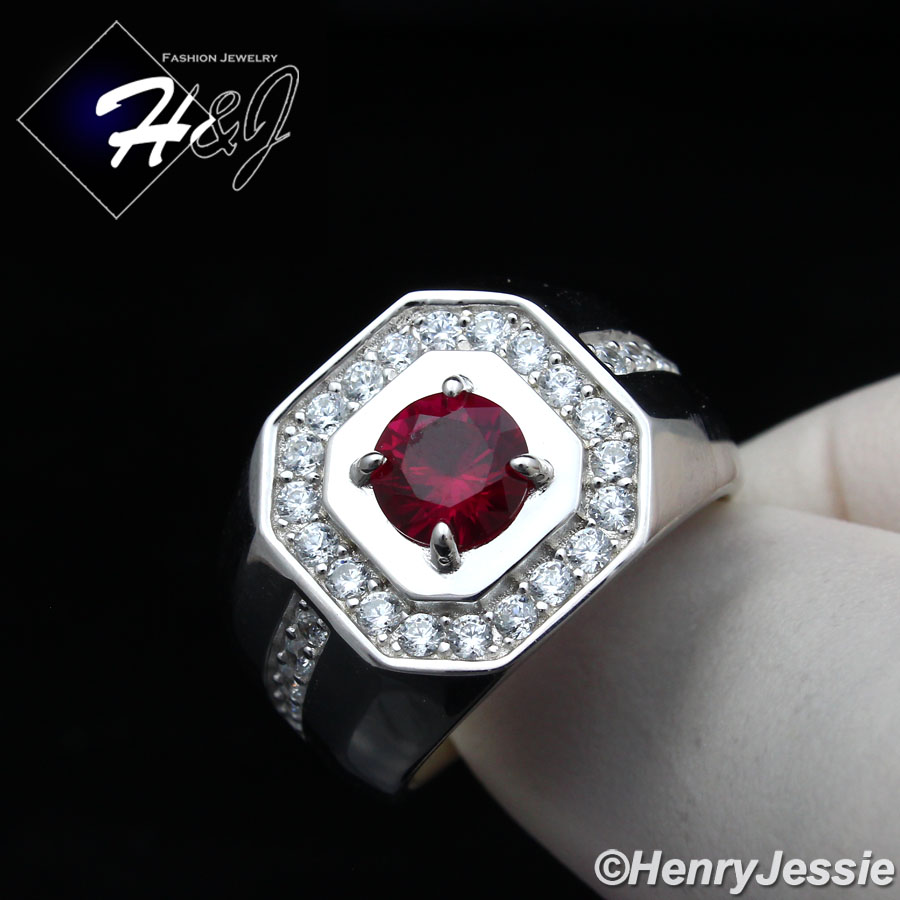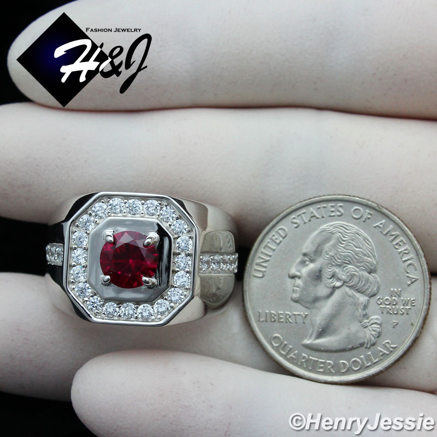 > Sterling Silver > Men > Rings > MEN 925 STERLING SILVER ICY DIAMOND ROUND RUBY GEMSTONE BLING RING*SR158