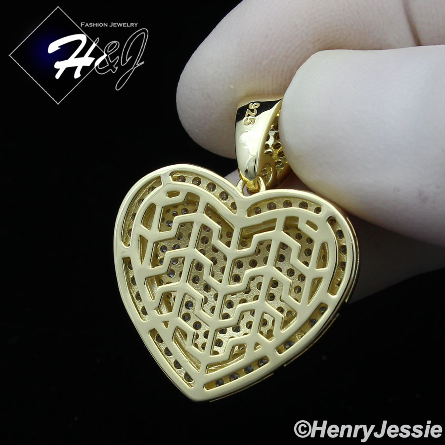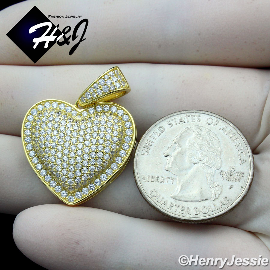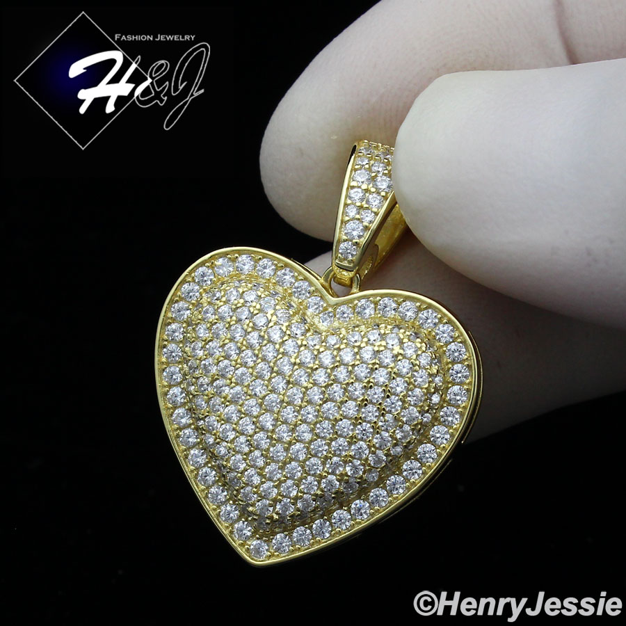 > Sterling Silver > Men > Pendants > MEN WOMEN 925 STERLING SILVER ICY DIAMOND BLING 3D GOLD HEART SHAPE PENDANT*GP341