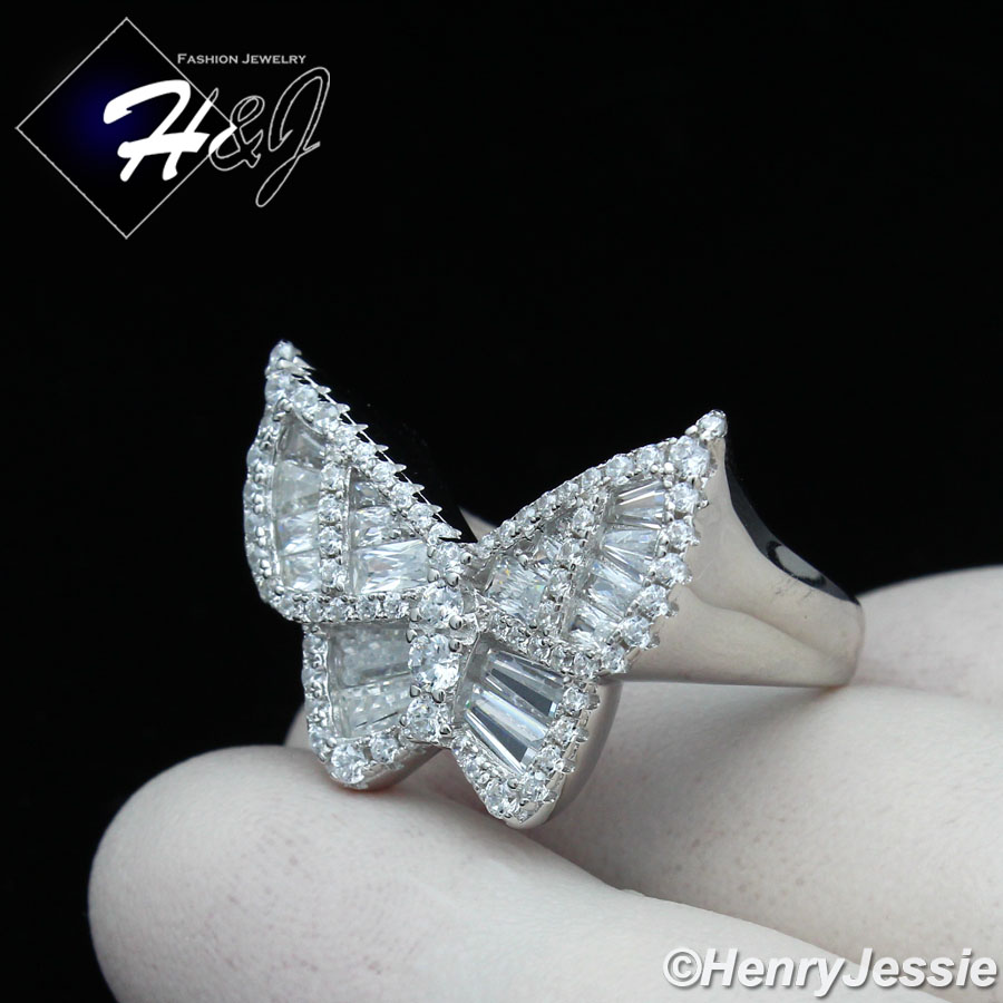 > Sterling Silver > Women > Rings > WOMEN 925 STERLING SILVER ICY BAGUETTE CZ BUTTERFLY SILVER RING SIZE 6-9*SR165