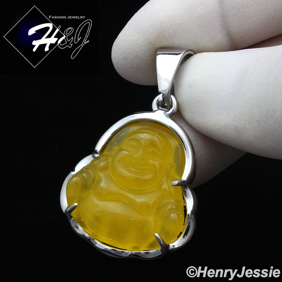 > Stainless Steel > Men > Pendants > MEN WOMEN Stainless Steel Jade/Onyx/Blue/Pink/White Gemstone Silver Buddha Pendant*P123