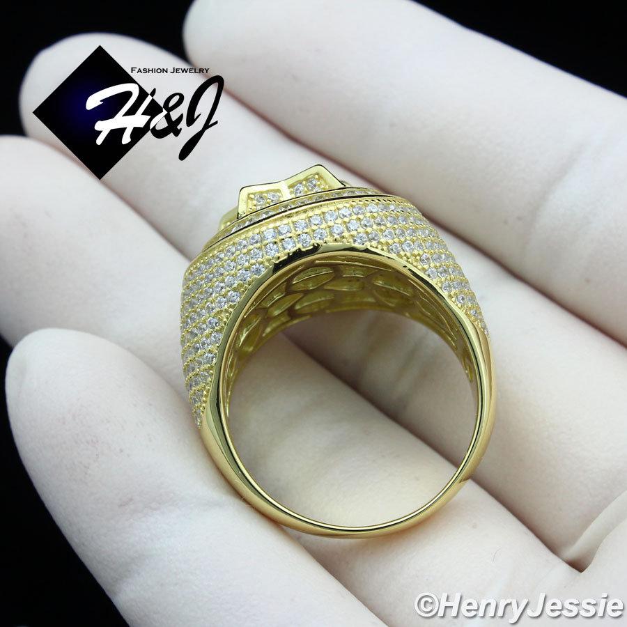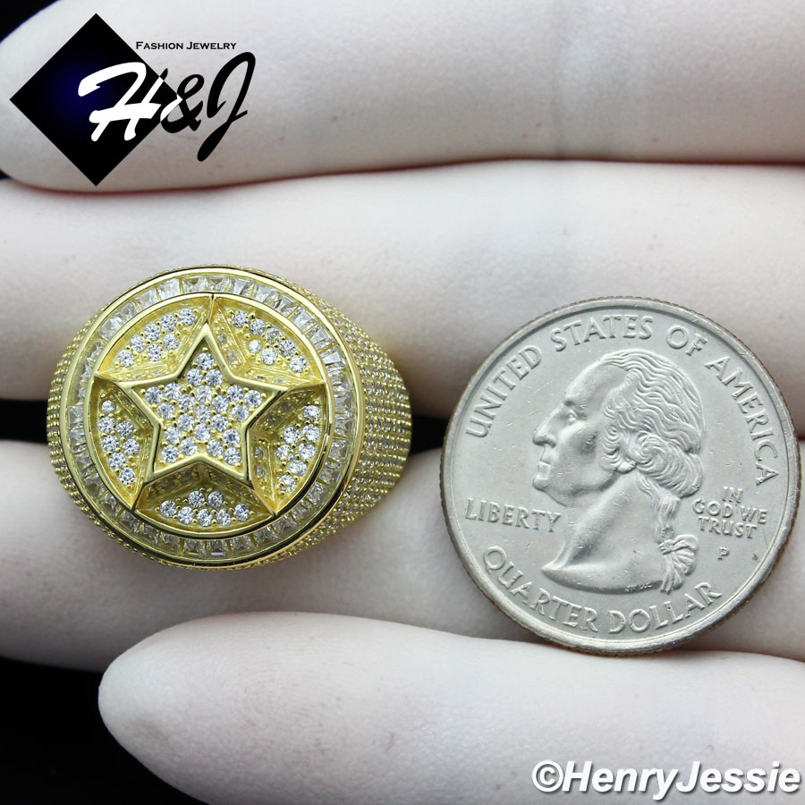 > Sterling Silver > Men > Rings > MEN 925 STERLING SILVER ICY DIAMOND BLING 3D STAR GOLD ROUND RING*SR172
