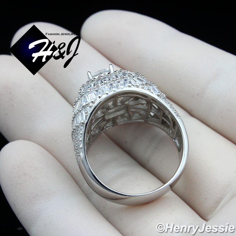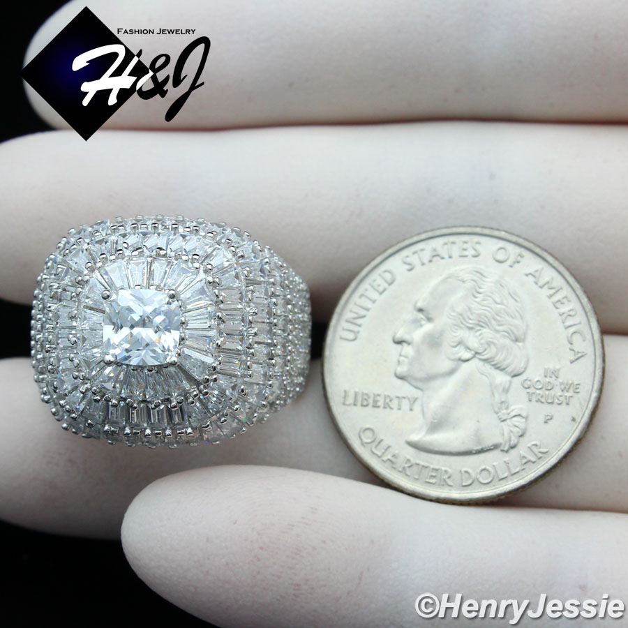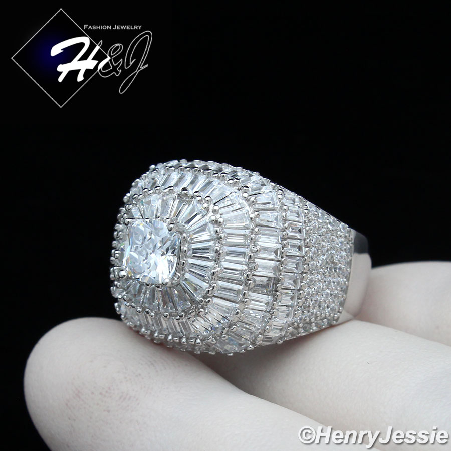 > Sterling Silver > Men > Rings > MEN 925 STERLING SILVER ICY BAGUETTE DIAMOND BLING 3D SILVER SQUARE RING*SR173