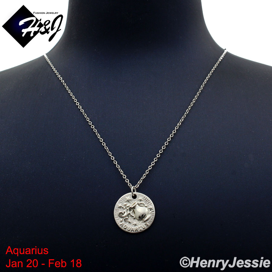 > Sterling Silver > Women > Necklace Pendant SETS > WOMEN 925 STERLING SILVER "AQUARIUS" ZODIAC HORSCOPE PENDANT CHAIN NECKLACE*WN12