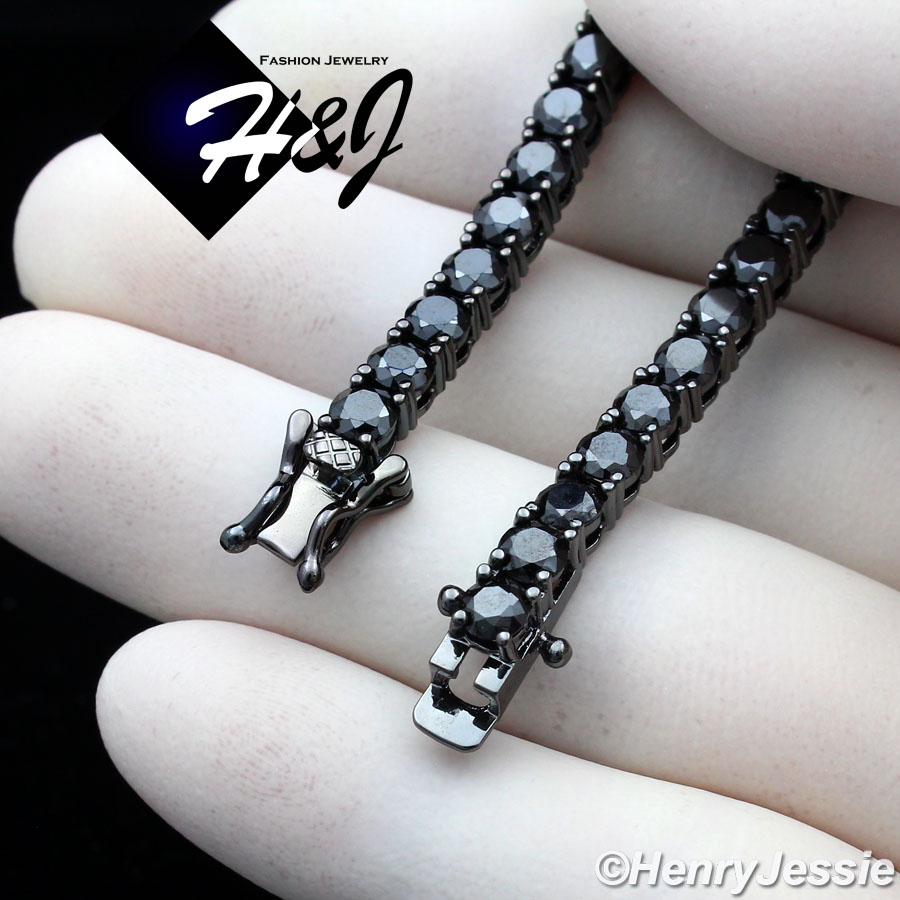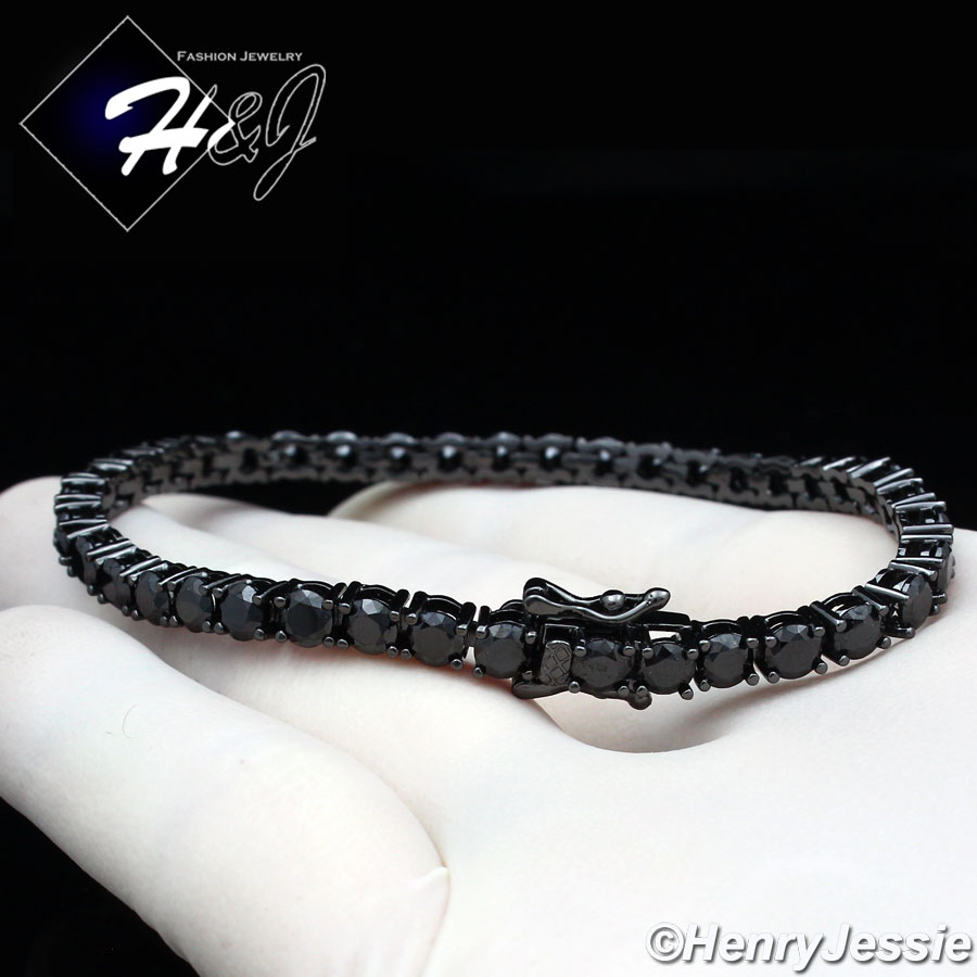 > BLING DIAMOND Jewelry > Men > Bracelets > 7"-8.5"MEN WOMEN 14K BLACK GOLD FINISH 4MM ICED 1 ROW BLACK TENNIS CHAIN BRACELET*BB2