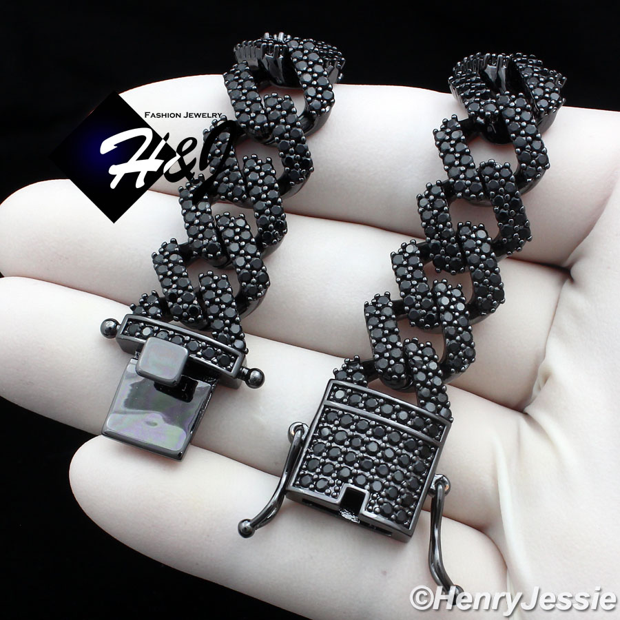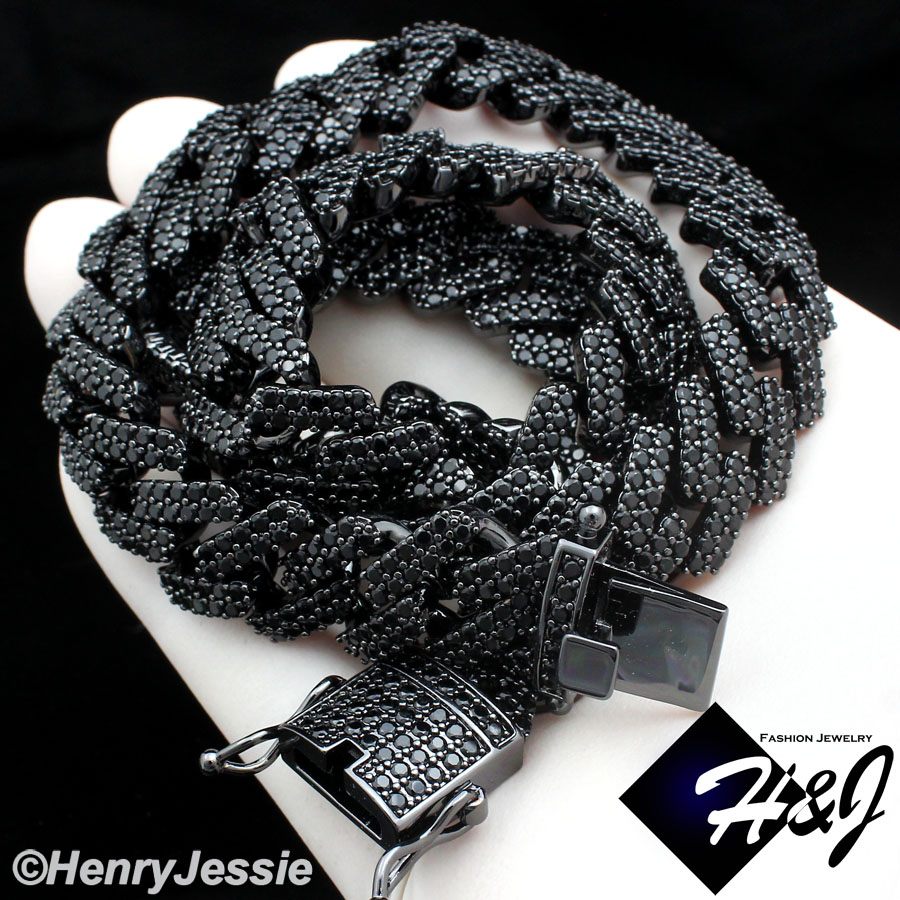 > BLING DIAMOND Jewelry > Men > Necklaces > 16"-30"MEN 14K BLACK GOLD FINISH 14MM BLACK LAB DIAMOND ICED BLING MIAMI CUBAN CURB CHAIN NECKLACE*BBN6