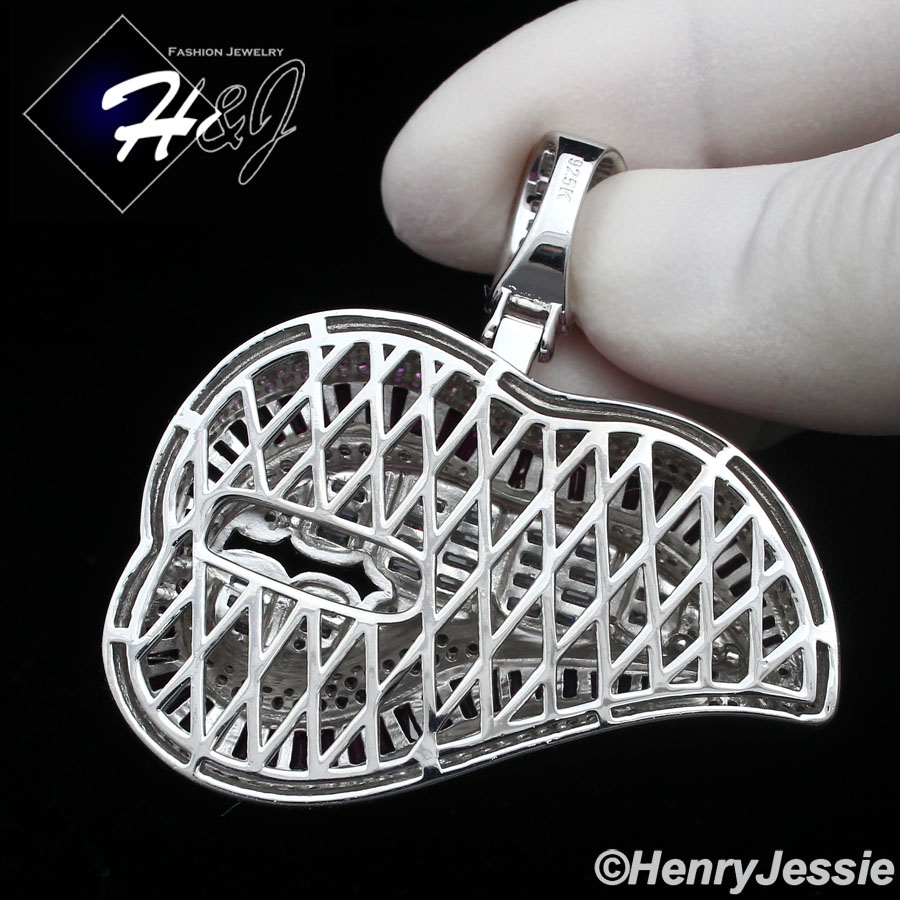 > Sterling Silver > Men > Pendants > 925 STERLING SILVER ICY BLING CZ MAGENTA PINK 3D HIP HOP LIPS/TEETH PENDANT*P418