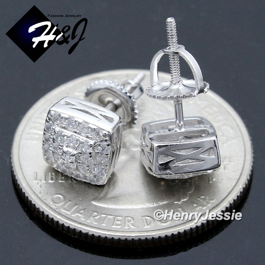> Sterling Silver > Men > Earrings > MEN SOLID 925 STERLING SILVER 8MM ICY BLING CZ 3D SQUARE STUD EARRING*E200