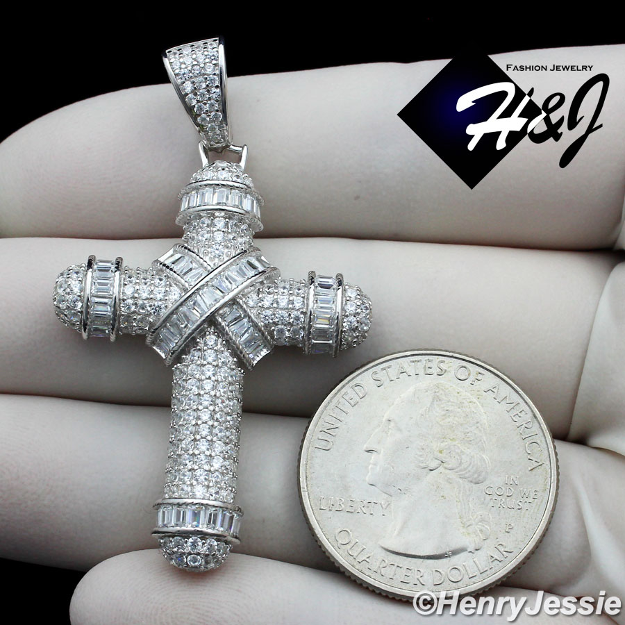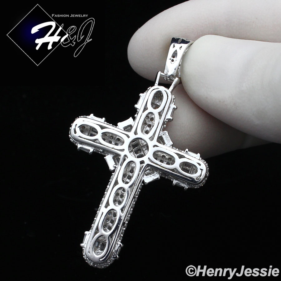 > Sterling Silver > Men > Pendants > MEN SOLID 925 STERLING SILVER ICY BLING CUBIC ZIRCONIA 3D CROSS PENDANT*SP232
